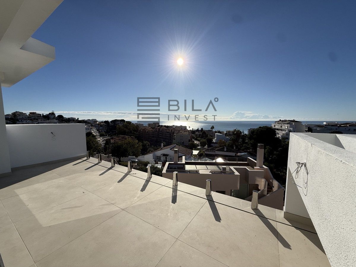 El adosado cuenta con vistas panorámicas al mar y a la montaña, en un vecindario elegante e internacional.