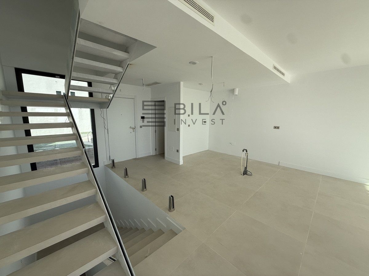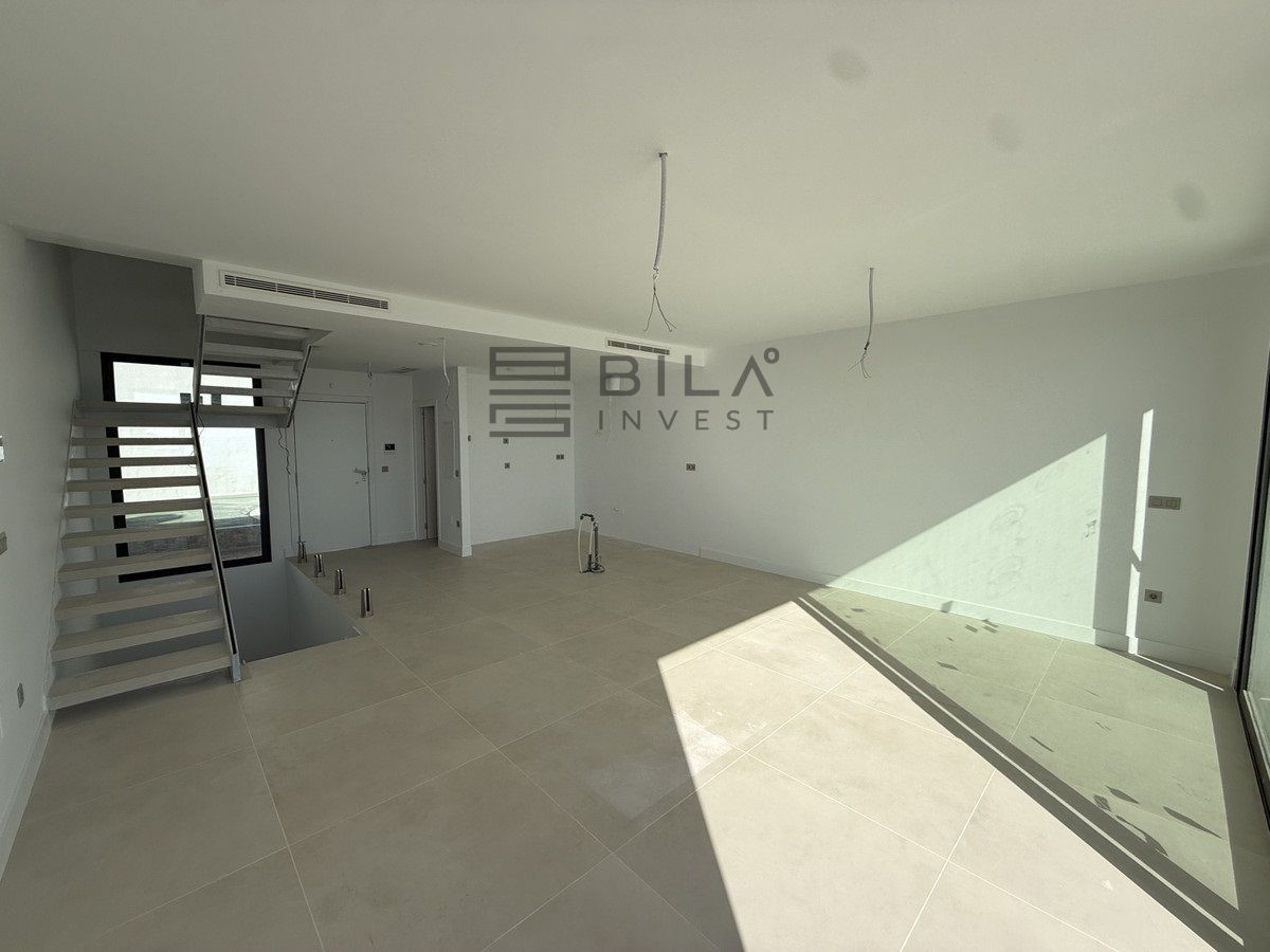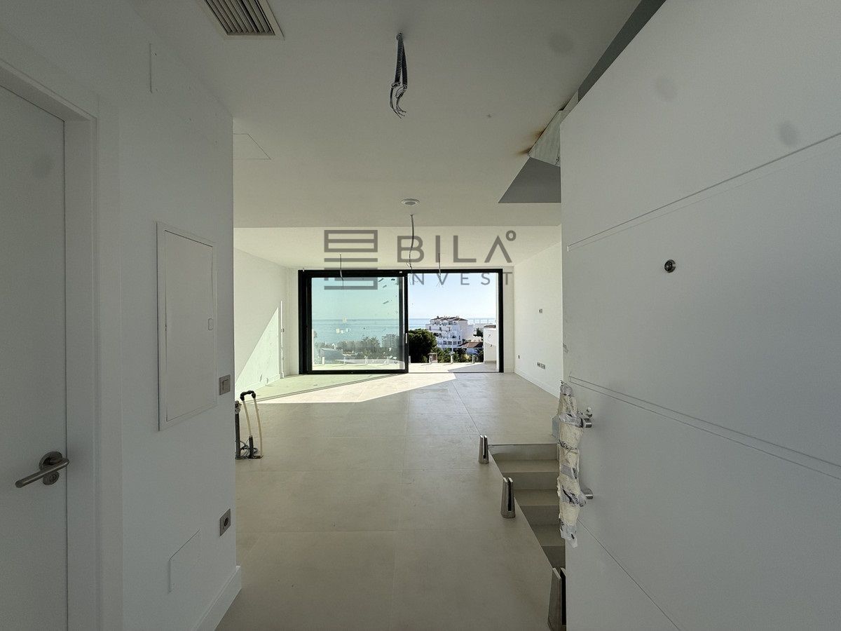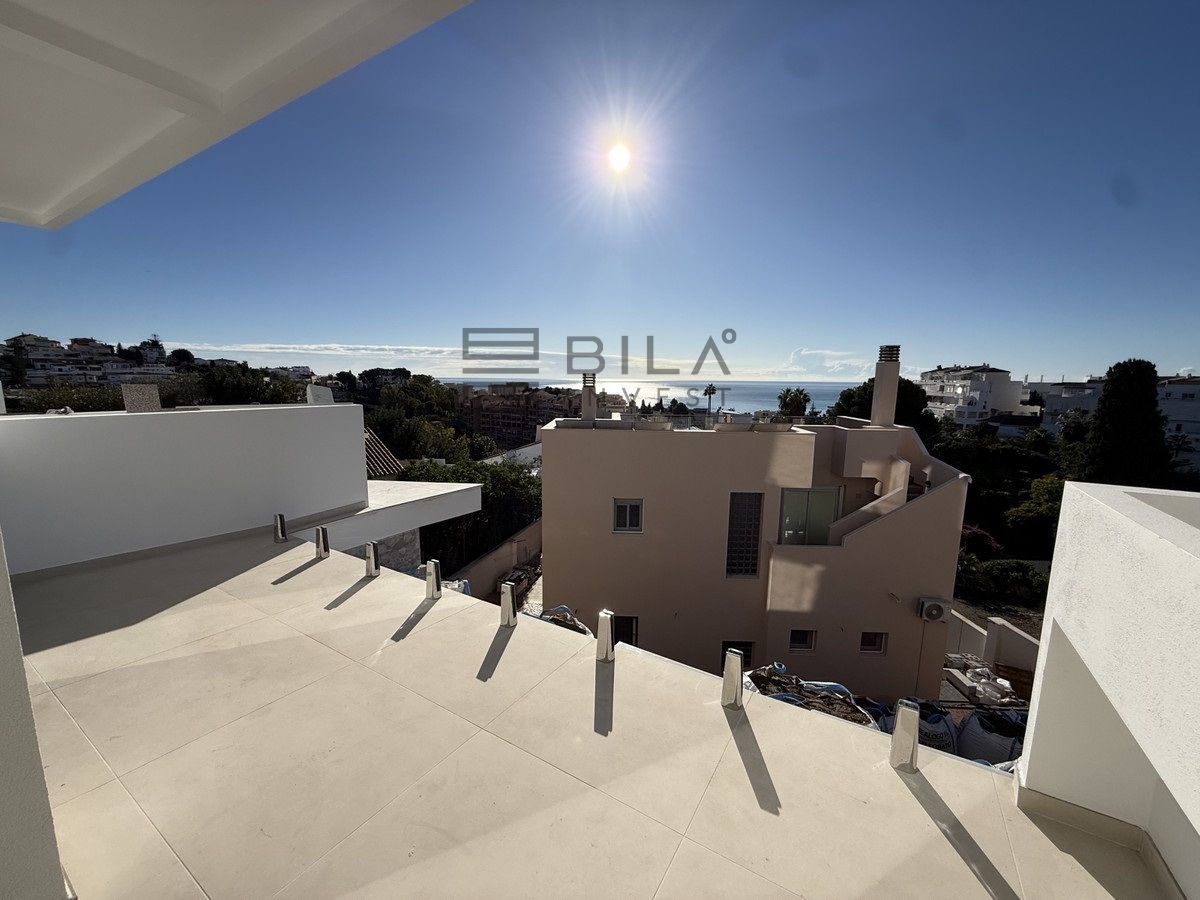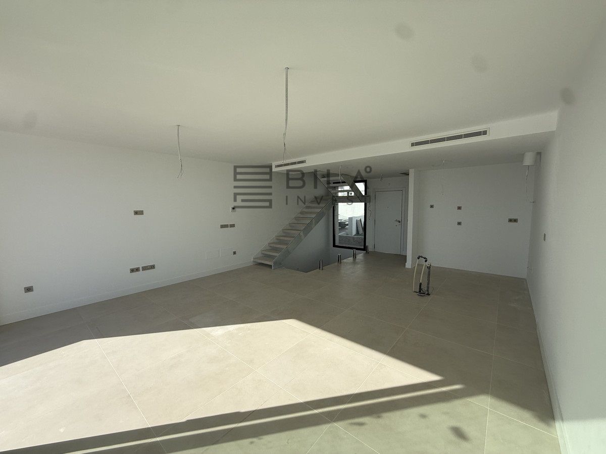 Esta elegante adosado cuenta con tres dormitorios, tres baños (dos en suite y un aseo independiente con calefacción por suelo radiante), una amplia cocina americana, un comedor y un gran salón. La vivienda se distribuye en tres niveles y ofrece maravillosas vistas al mar desde todas las plantas. La construcción avanza a buen ritmo y se espera su finalización para finales de 2025.