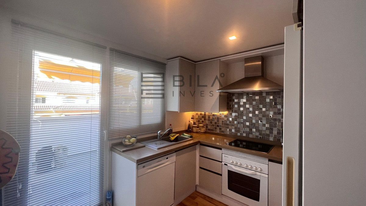 Salón-comedor muy luminoso con acceso directo a la terraza y cocina independiente totalmente equipada, también con salida al exterior, creando una sensación de amplitud y fluidez entre interior y exterior.