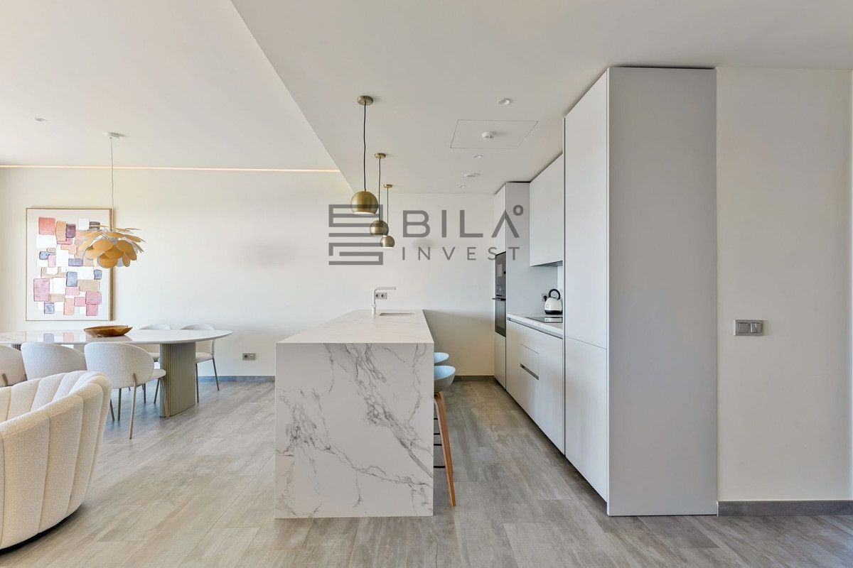 Se compone de 3 habitaciones y 2 baños completos, con armarios empotrados que optimizan el espacio de almacenamiento sin renunciar al diseño. La cocina está amueblada y el conjunto se entrega amueblado, listo para entrar a vivir, con aire acondicionado que garantiza confort durante todo el año. El salón, amplio y luminoso, se integra con el comedor para formar un único espacio práctico y agradable para el día a día.