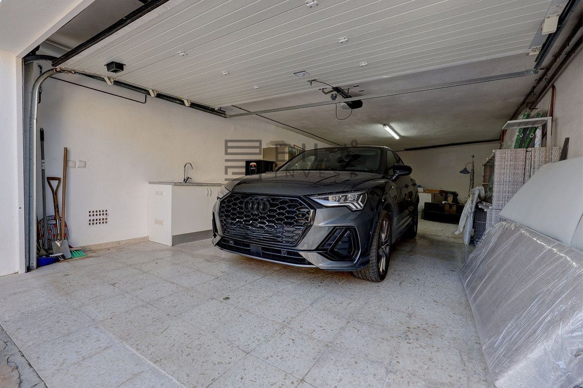 El portón delantero de la propiedad es eléctrico y hay un amplio garaje y zona de aparcamiento en la entrada para un total de 3 coches. También hay un lavadero en el garaje y gran parte de la maquinaria de la casa se encuentra aquí abajo: un tanque de agua adicional, los mecanismos de la piscina, la caldera, etc.