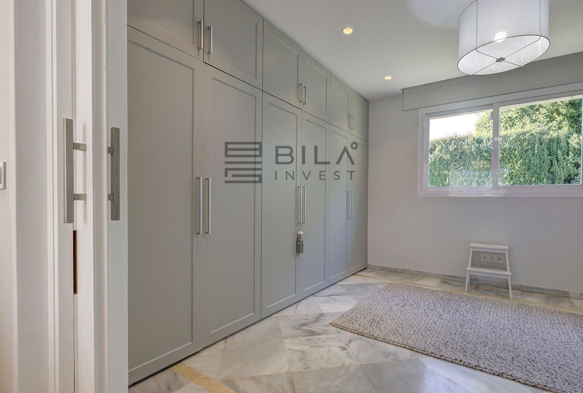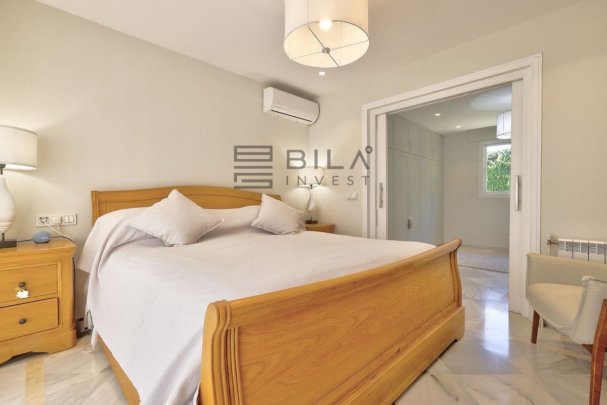 El dormitorio principal cuenta con baño completo en suite y un vestidor del tamaño de un dormitorio. Esta suite tiene puertas que dan a la terraza y a la piscina.