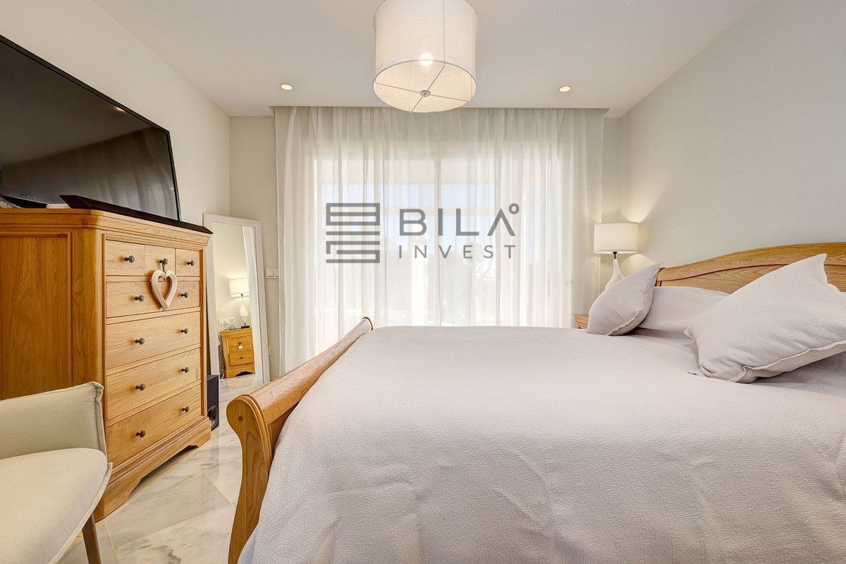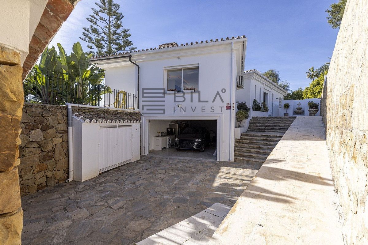 La villa se encuentra en la parte baja de Calahonda, junto a la Avenida España. Su orientación suroeste le permite disfrutar del sol todo el día, lo que inunda la casa de luz natural. La parcela es una esquina elevada y se encuentra en una calle sin salida, por lo que no hay tráfico y la zona es completamente tranquila.