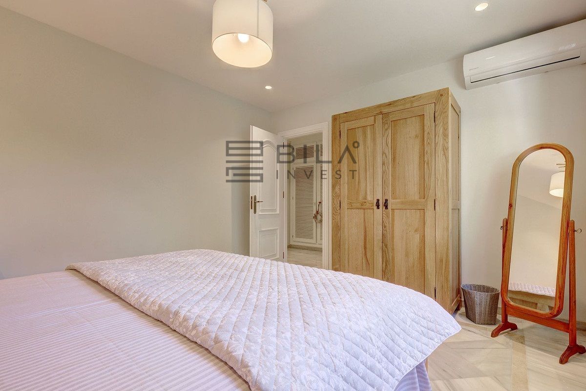 El segundo dormitorio también tiene acceso a la terraza y a la piscina. Comparte un baño completo con los demás dormitorios y hay un tercer baño, que actualmente es un aseo, pero podría reconvertirse fácilmente en un baño completo como antes, lo que daría como resultado 3 baños completos.