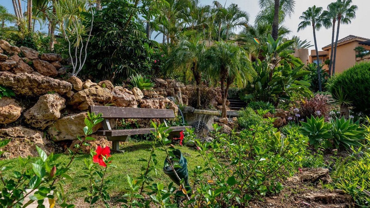 Este complejo residencial con vigilancia 24 horas, rodeado de exuberantes jardines tropicales, piscinas y cascadas, cuenta con una zona SPA, jacuzzi, piscina cubierta y gimnasio, y se encuentra a aproximadamente 2 km del centro de Marbella y de sus playas. Diseñado por el célebre arquitecto Melvin Villarroel, se construyó con materiales de primera calidad y características únicas que le otorgan un carácter distintivo.