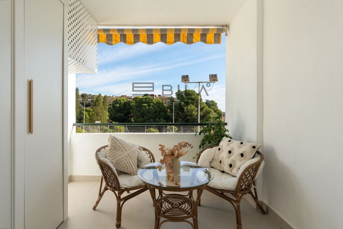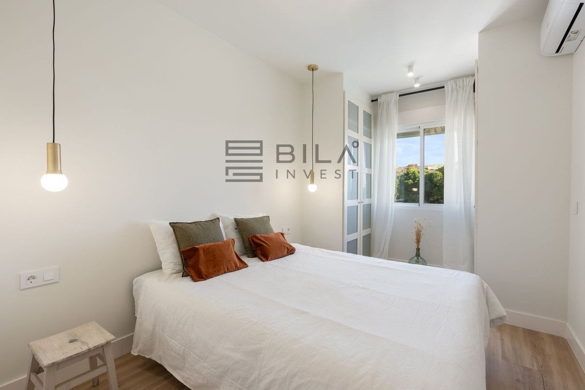 Bienvenido a este excepcional apartamento donde diseño moderno, confort y encanto mediterráneo se combinan en perfecta armonía. Situado en un vecindario tranquilo y muy solicitado, rodeado de zonas verdes, este hogar ofrece un estilo de vida sereno a solo 5 minutos a pie (menos de 500 metros) de las doradas arenas de la playa de Carvajal.