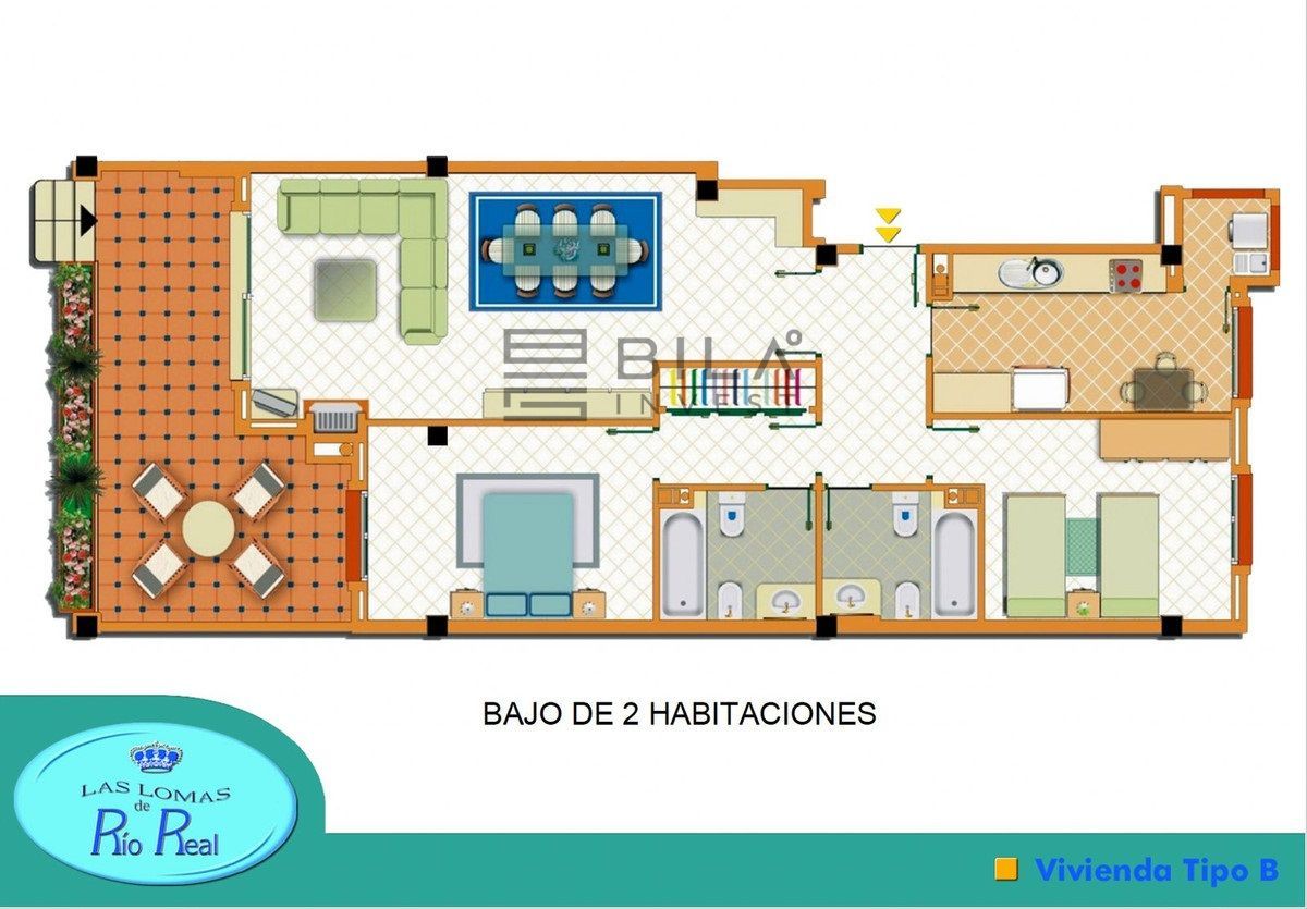 El apartamento cuenta con dos dormitorios y dos baños completos, incluido un dormitorio principal con baño en suite que garantiza la privacidad y el confort. El amplio y acogedor salón se abre directamente a la terraza, creando una fluidez perfecta entre los espacios interiores y exteriores.