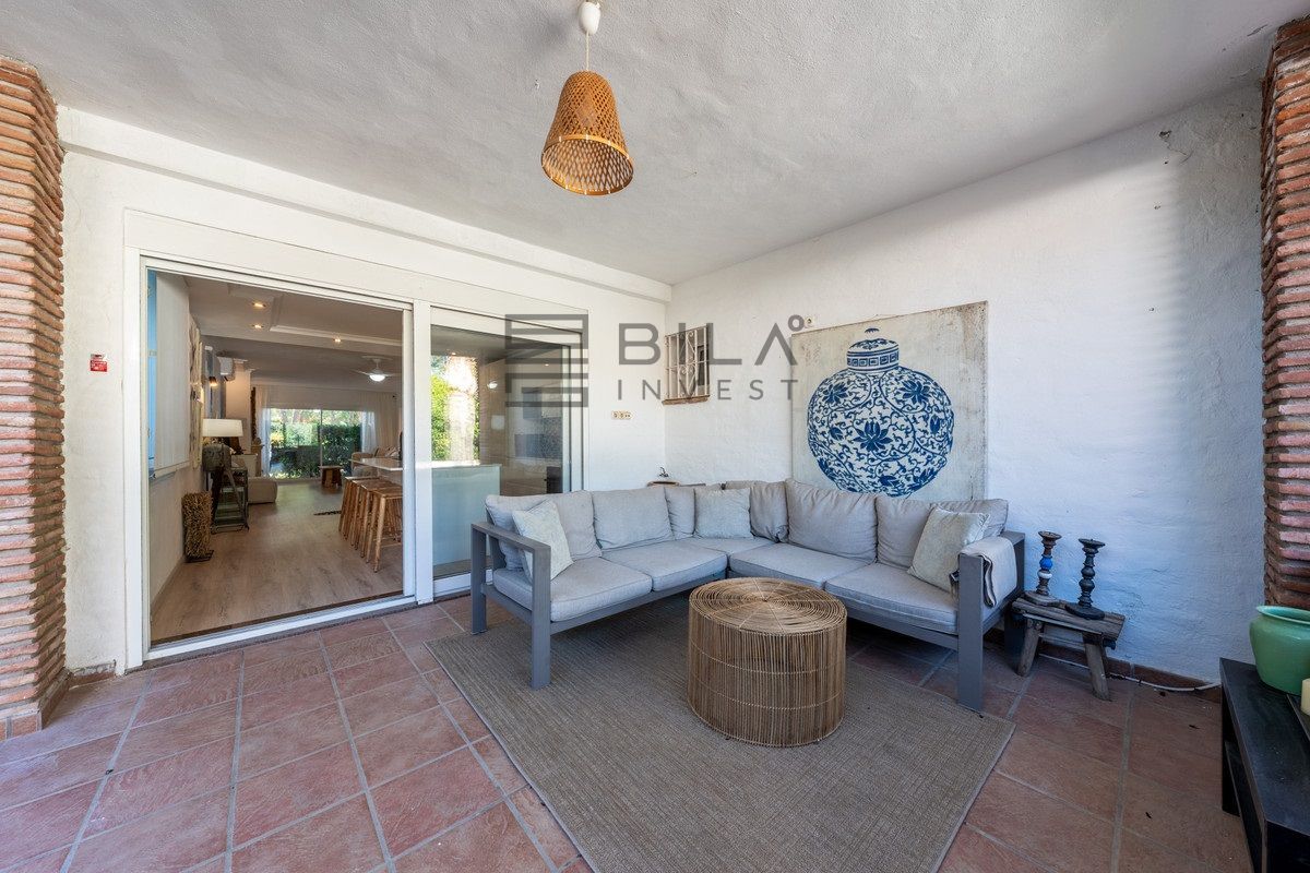 Una encantadora casa adosada de tres dormitorios en Marbella Este, esta propiedad combina la relajada vida mediterránea con una refinada estética boho-chic.