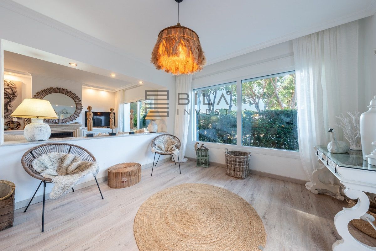 La casa le da la bienvenida con espacios luminosos, donde las texturas naturales, los suaves tonos neutros y los detalles artesanales crean una elegancia cálida y natural. El salón se integra a la perfección con el comedor, decorado con materiales orgánicos, detalles en tejido y una decoración cuidadosamente seleccionada que evoca un ambiente costero relajado y sofisticado.