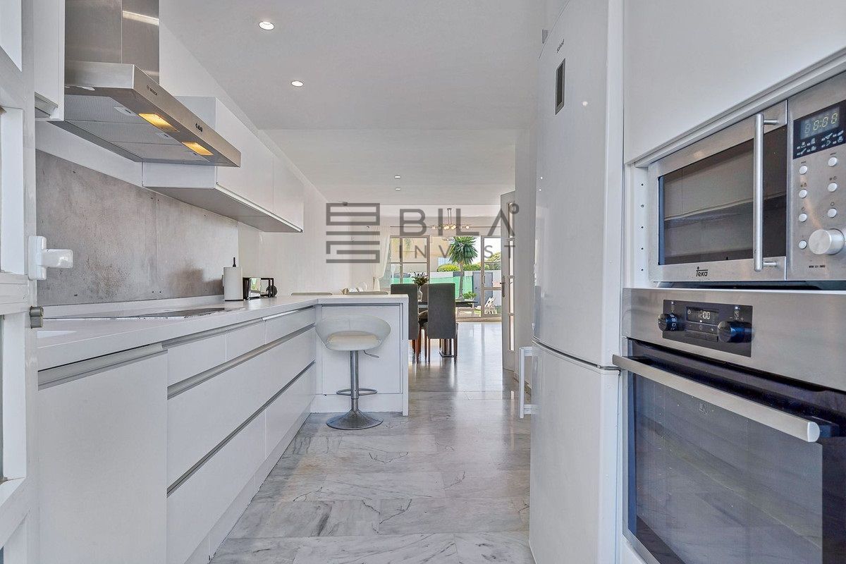 Planta baja: moderna cocina totalmente equipada, abierta al salón-comedor, desde donde se accede a una terraza cubierta y al jardín comunitario, además de un aseo.