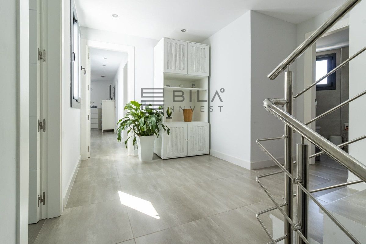 Descubre esta excepcional villa pareada de nueva construcción en el corazón del encantador distrito Pueblo de San Pedro de Alcántara, ubicada en la Calle Martín Pescador, en la soleada Costa del Sol de Marbella. Situada en el límite del casco urbano, esta propiedad única ofrece la fusión perfecta de tranquilidad y comodidad urbana —ideal para familias que buscan un refugio pacífico con fácil acceso a servicios vibrantes—. A solo un corto paseo del animado Bulevar San Pedro Alcántara, un boulevard familiar con parques infantiles, fuentes y espacios verdes, y a minutos de la prístina Playa de San Pedro con su pintoresco paseo marítimo. Abraza el auténtico estilo de vida andaluz en este pueblo transitable, famoso por su mezcla de encanto tradicional y comodidades modernas, incluyendo colegios internacionales cercanos, supermercados, restaurantes y campos de golf de clase mundial como Los Arqueros. Con conexiones rápidas a través de la A-7 al glamuroso Puerto Banús (a 5 minutos en coche) y al casco antiguo histórico de Marbella, es un oasis para quienes desean aislamiento sin desconexión.