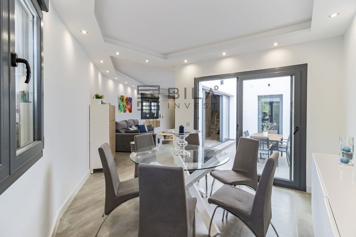 Distribuida en cuatro plantas que abarcan 336 m² construidos (250 m² útiles) sobre una parcela de 112 m², esta joya con orientación sur —construida en 2018 e impecablemente mantenida— presume de un diseño innovador y características premium. El amplio sótano diáfano de 112 m², reforzado con muro de contención de hormigón hidrófugo para una durabilidad tipo búnker, ofrece espacio versátil para un gimnasio, cine o almacenamiento. La planta baja cuenta con 100 m² de vida elegante, incluyendo un espacioso salón-comedor, cocina moderna, patio privado de 12 m², aseo de invitados y garaje integrado. Sube a la primera planta de 100 m², con tres dormitorios generosos —uno principal con baño en suite y vestidor— más baños adicionales para el confort familiar. La planta superior de 25 m² se abre a una impresionante terraza de 70 m², completa con zona de lavadero, cocina pequeña, aseo, piscina privada, solárium y pérgola —perfecta para entretenimientos al aire libre con vistas impresionantes—.