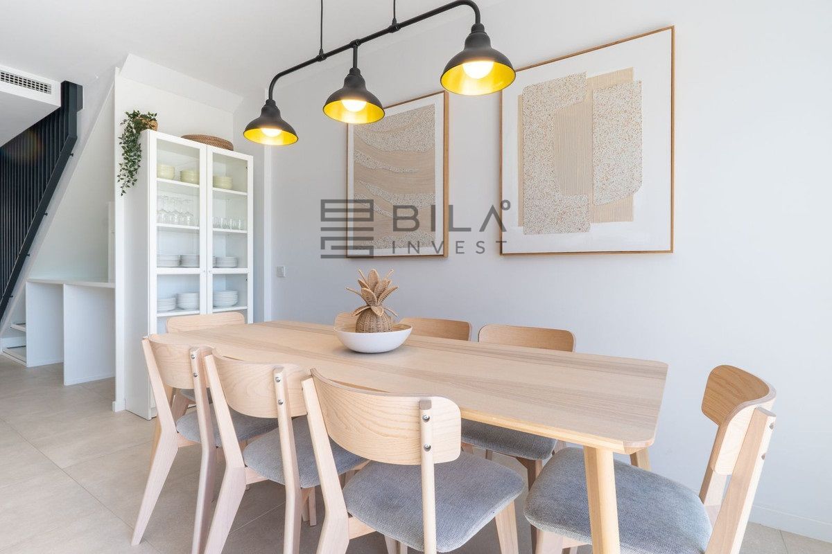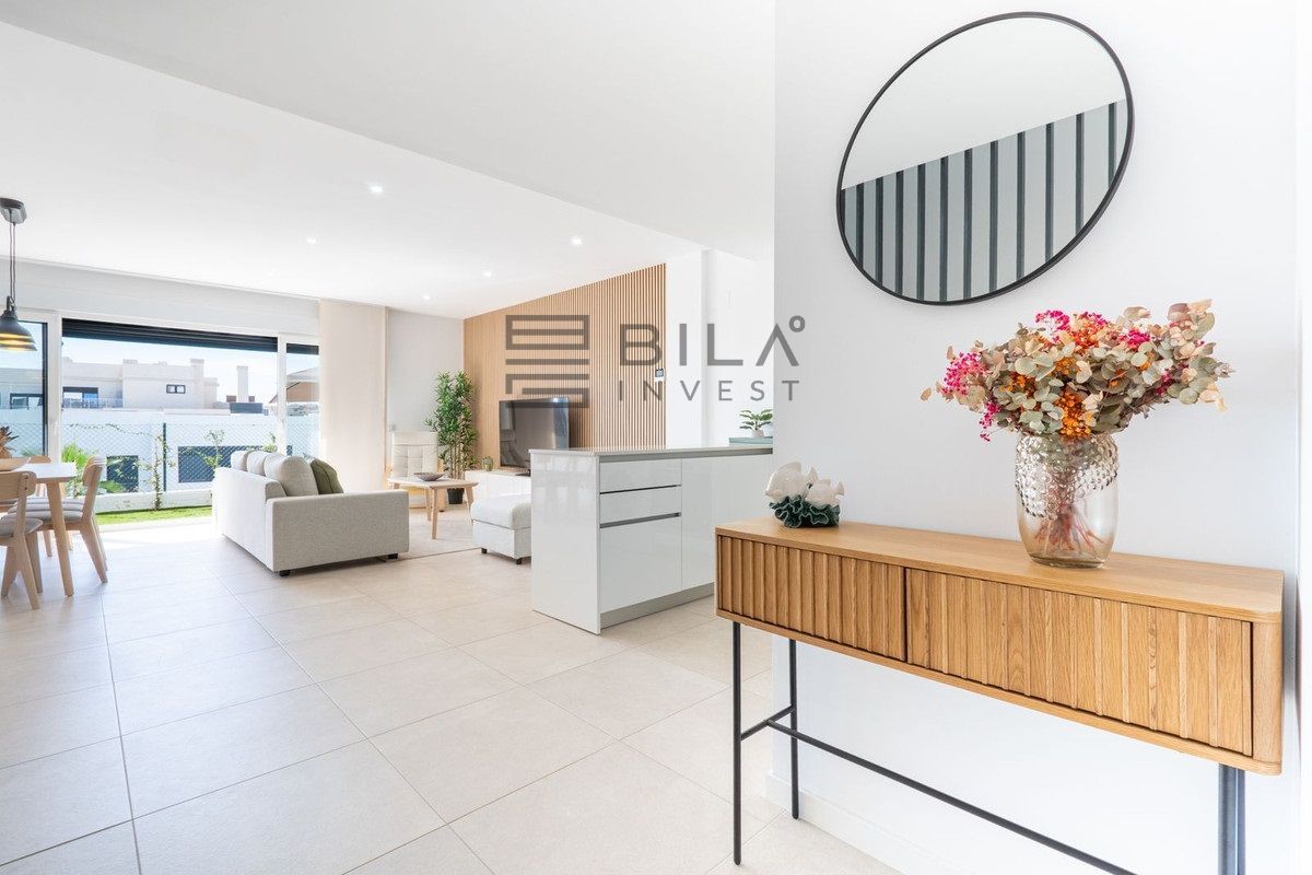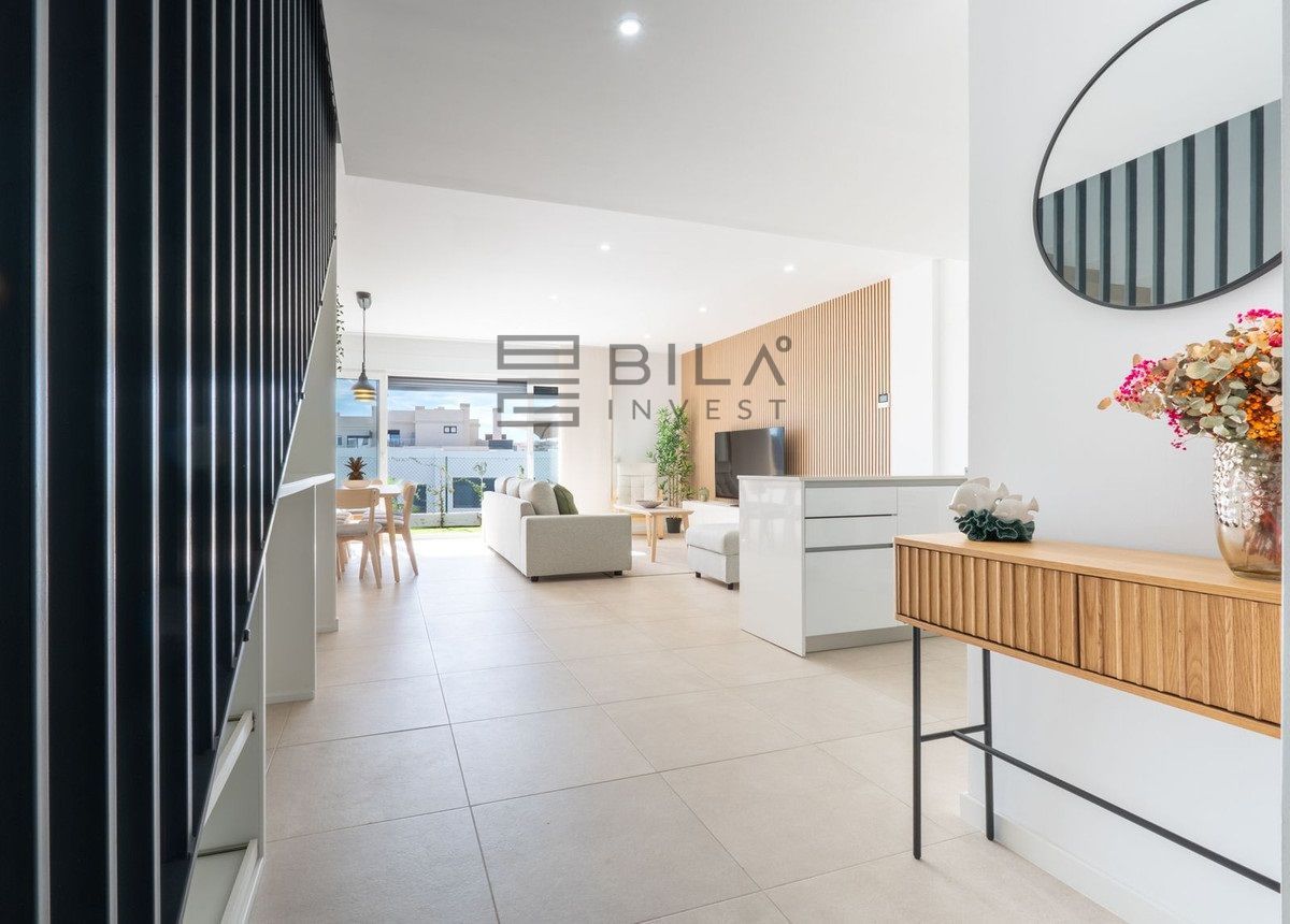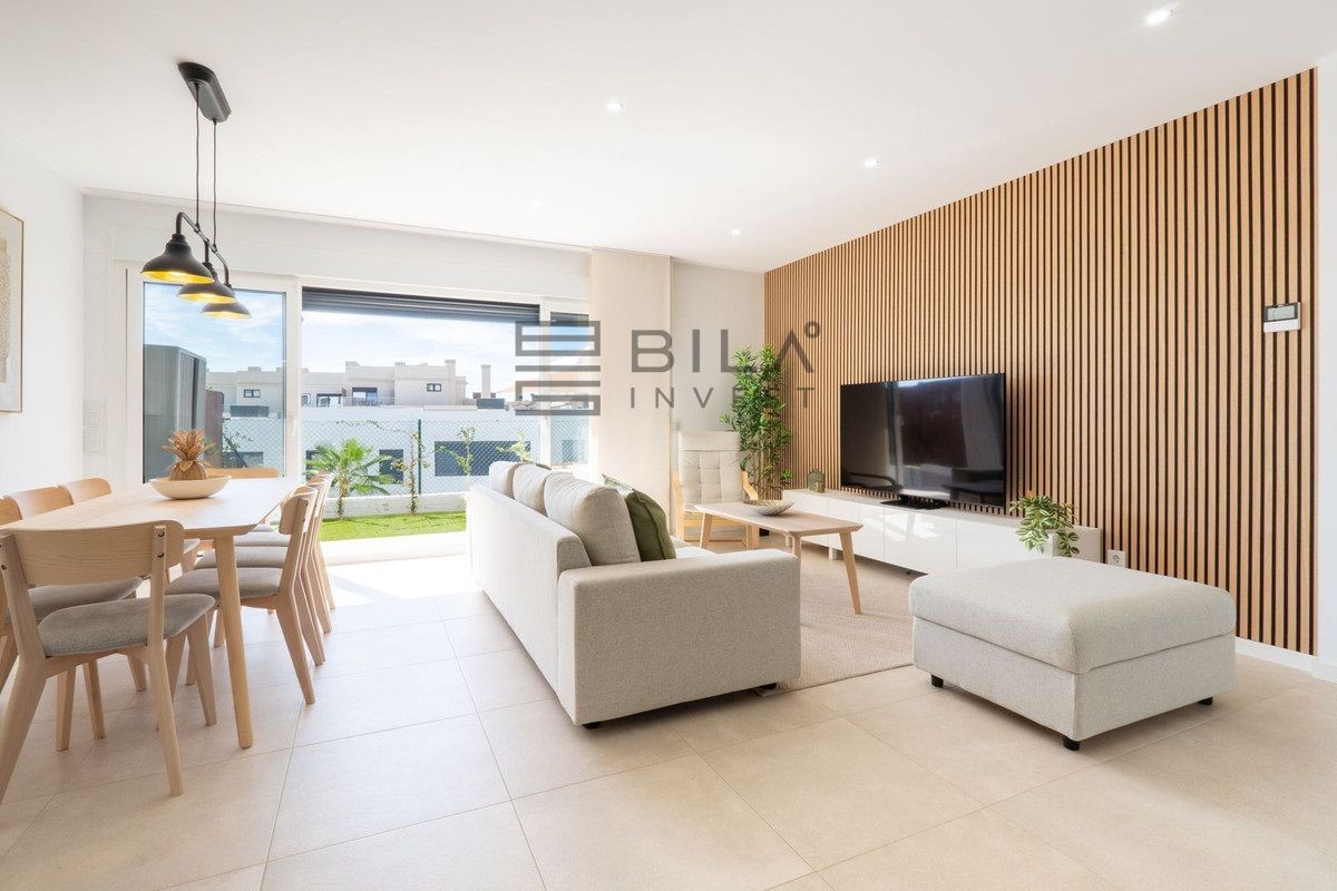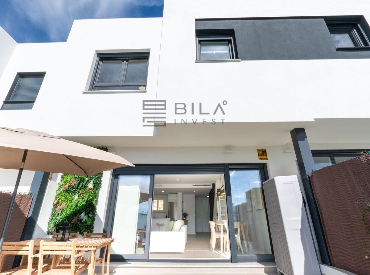 Esta elegante casa adosada ofrece diseño contemporáneo, espacios luminosos y una perfecta integración entre interior y exterior. La planta principal cuenta con un salón amplio con grandes ventanales y salida directa al jardín privado, ideal para disfrutar del clima mediterráneo todo el año. La propiedad destaca por su estilo actual, acabados de calidad y un ambiente acogedor y funcional para vivir todo el año o como residencia vacacional.