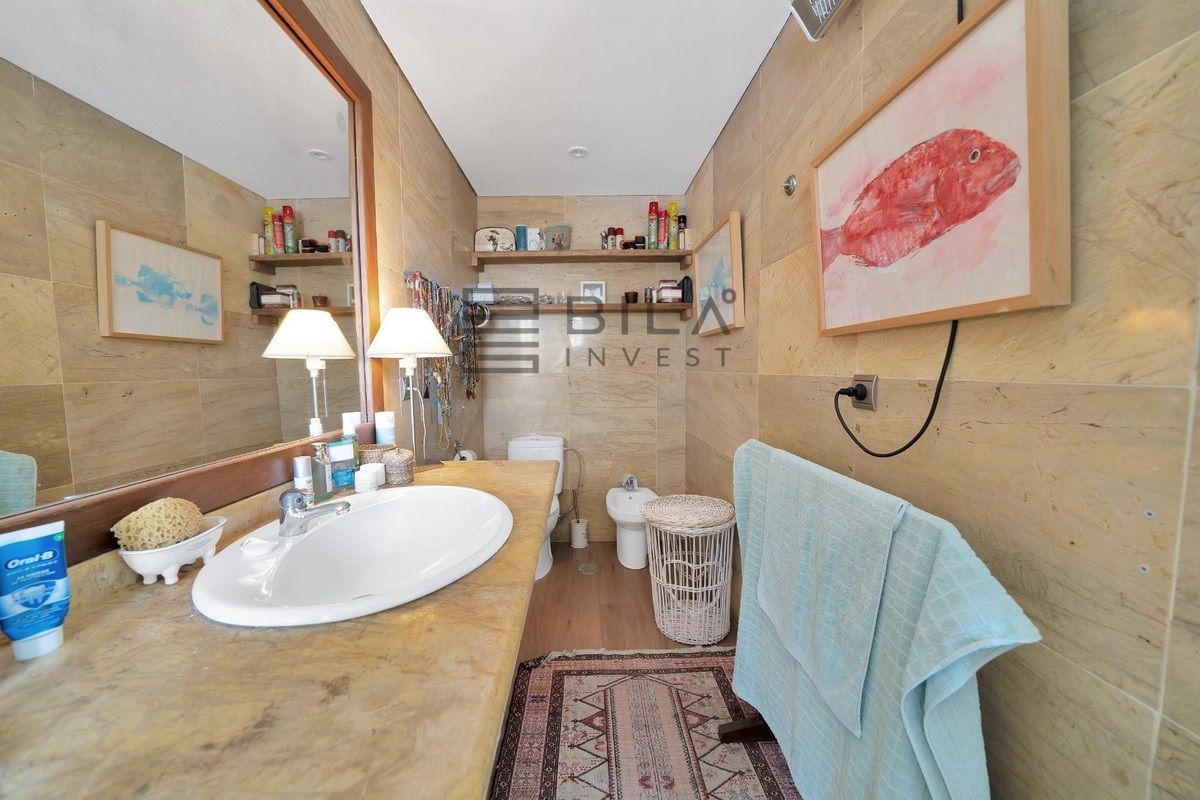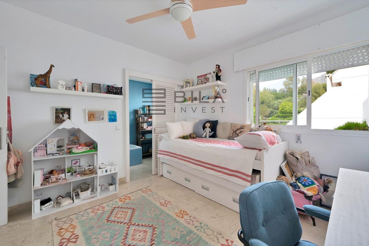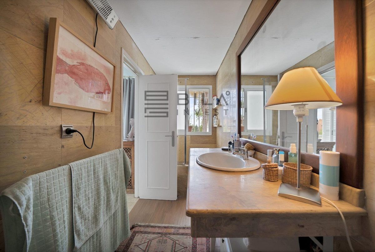En la primera planta se encuentran dos dormitorios, cada uno con su cuarto de baño, el principal con una espaciosa terraza de 20 m2 desde la que se ve el mar.