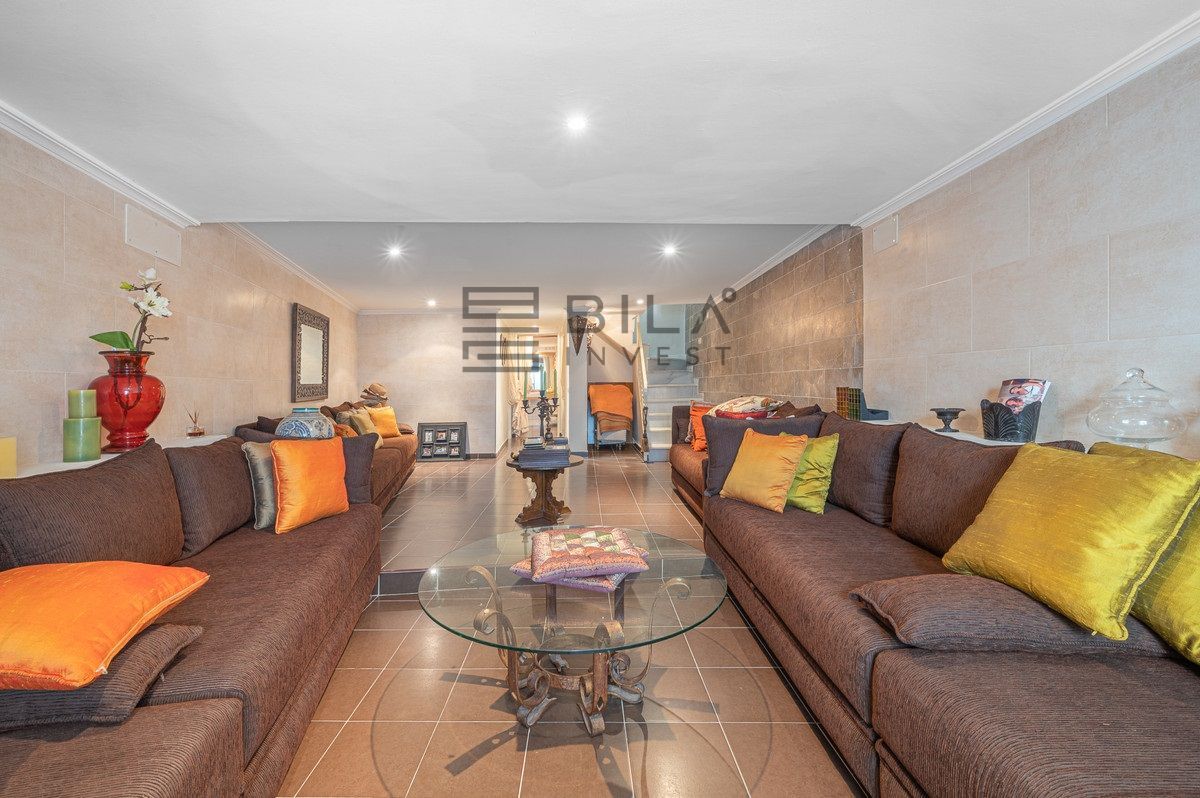 La vivienda adosada se distribuye en dos plantas más sótano, construida con materiales de calidad, techos altos y carpintería en madera y aluminio, entre otros detalles. En la planta principal se encuentra un amplio y luminoso salón con chimenea, zonas diferenciadas de televisión, estar y comedor, y salida directa a una terraza descubierta con acceso a las zonas comunitarias y piscina. La cocina, totalmente amueblada, es muy elegante y equipada con electrodomésticos de alta gama. Completa esta planta un aseo de invitados.