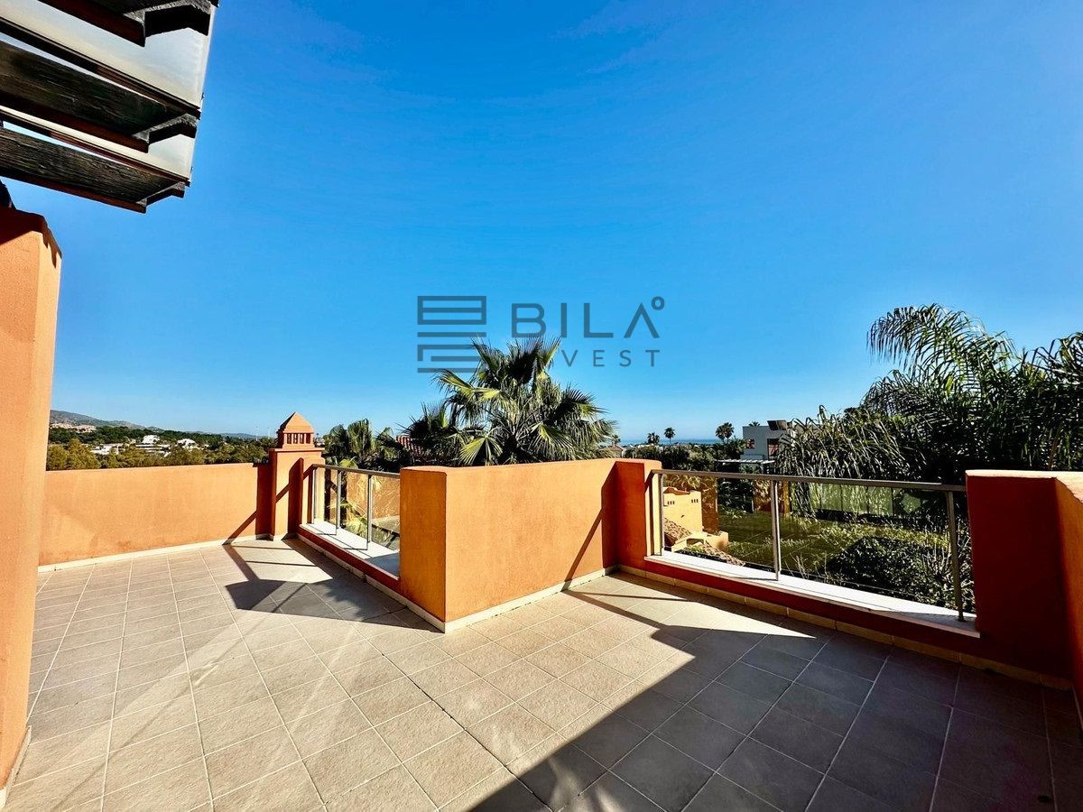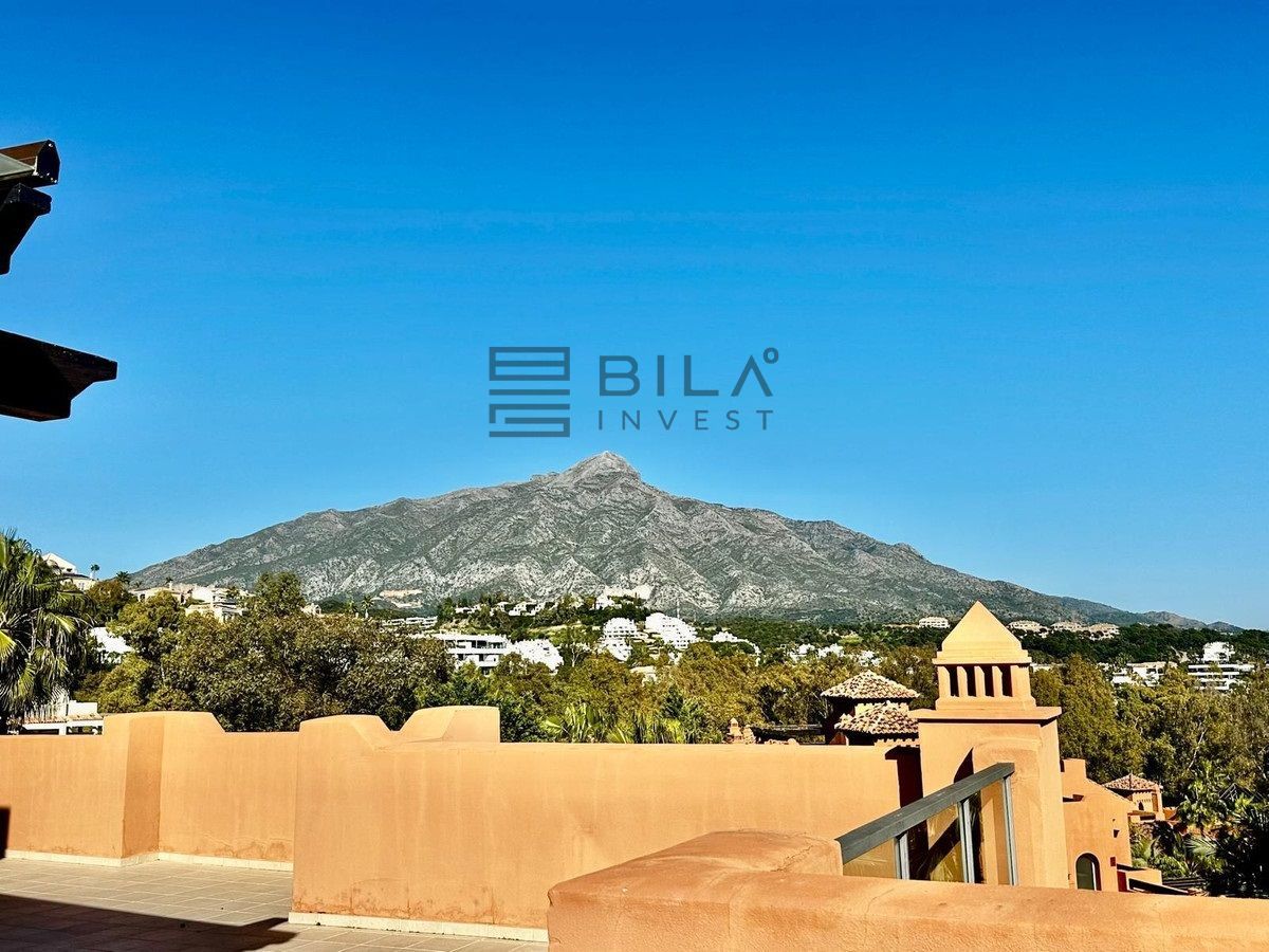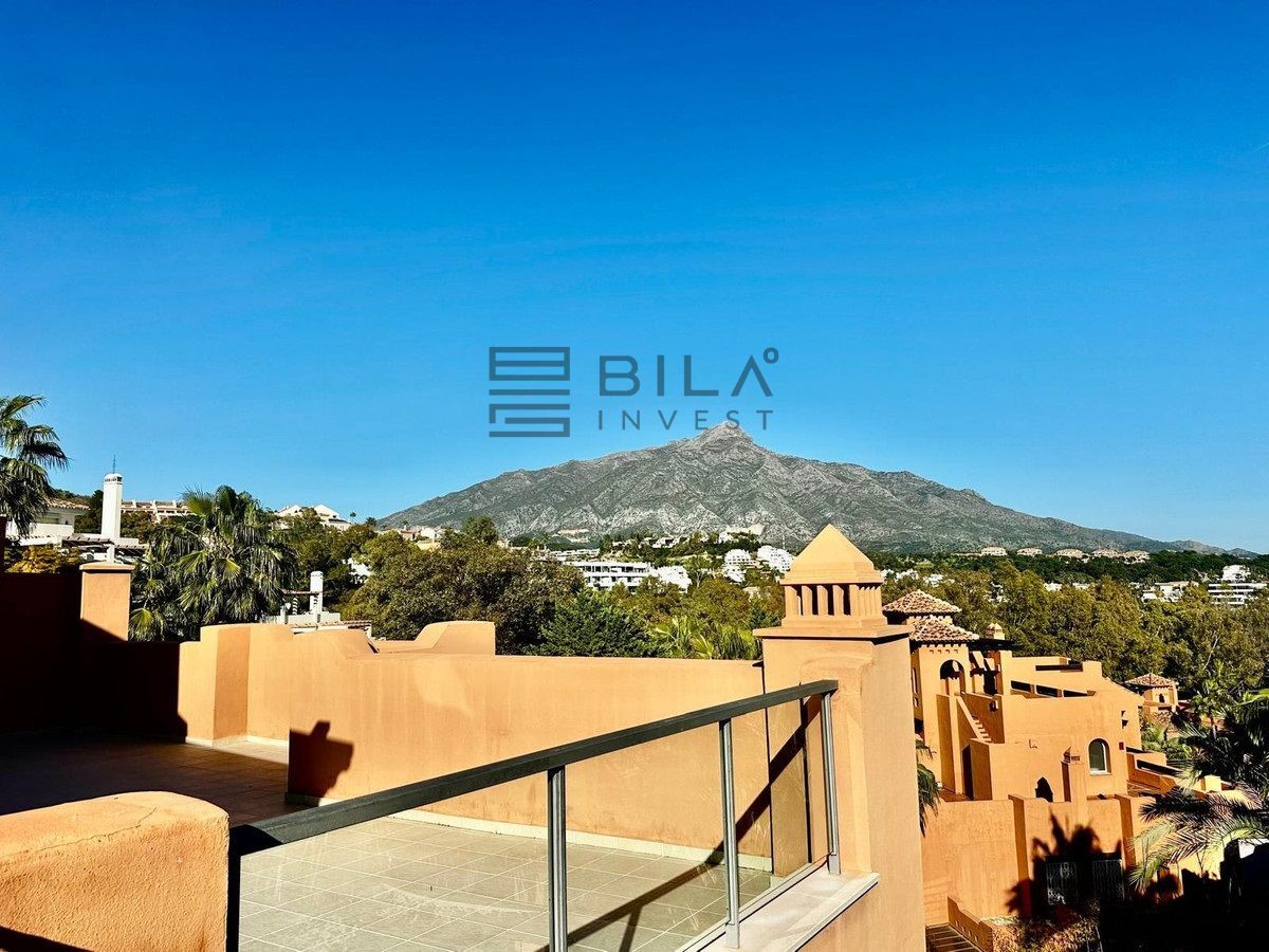 Espectacular ático dúplex de 3 dormitorios y 3 baños en una exclusiva urbanización de Nueva Andalucía, recientemente reformado combinando elegancia y confort, en la planta principal se encuentran dos amplios dormitorios y dos baños, una moderna cocina totalmente equipada con lavadero independiente y un espacioso salón-comedor con salida a una maravillosa terraza cubierta, perfecta para disfrutar con familia y amigos, desde esta terraza se accede además a una gran terraza descubierta ideal para relajarse al aire libre, en la planta superior se ubica el dormitorio principal con baño en suite y acceso a un amplio solárium privado con impresionantes vistas al mar Mediterráneo y a la montaña, la urbanización ofrece un entorno tranquilo y distinguido con zonas ajardinadas, piscina y seguridad, la vivienda cuenta además con dos plazas de garaje y un trastero, una oportunidad única para quienes buscan lujo, comodidad y vistas inmejorables en una de las zonas más exclusivas de Marbella.