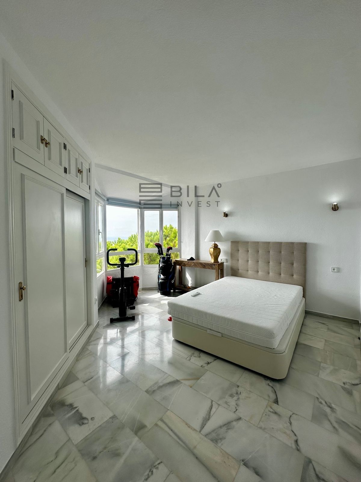 El luminoso salón conecta con una amplia terraza, perfecta para relajarse o disfrutar de comidas al aire libre contemplando el horizonte. Los tres dormitorios también cuentan con vistas al mar, garantizando un ambiente tranquilo y luminoso.