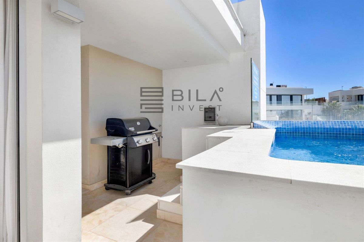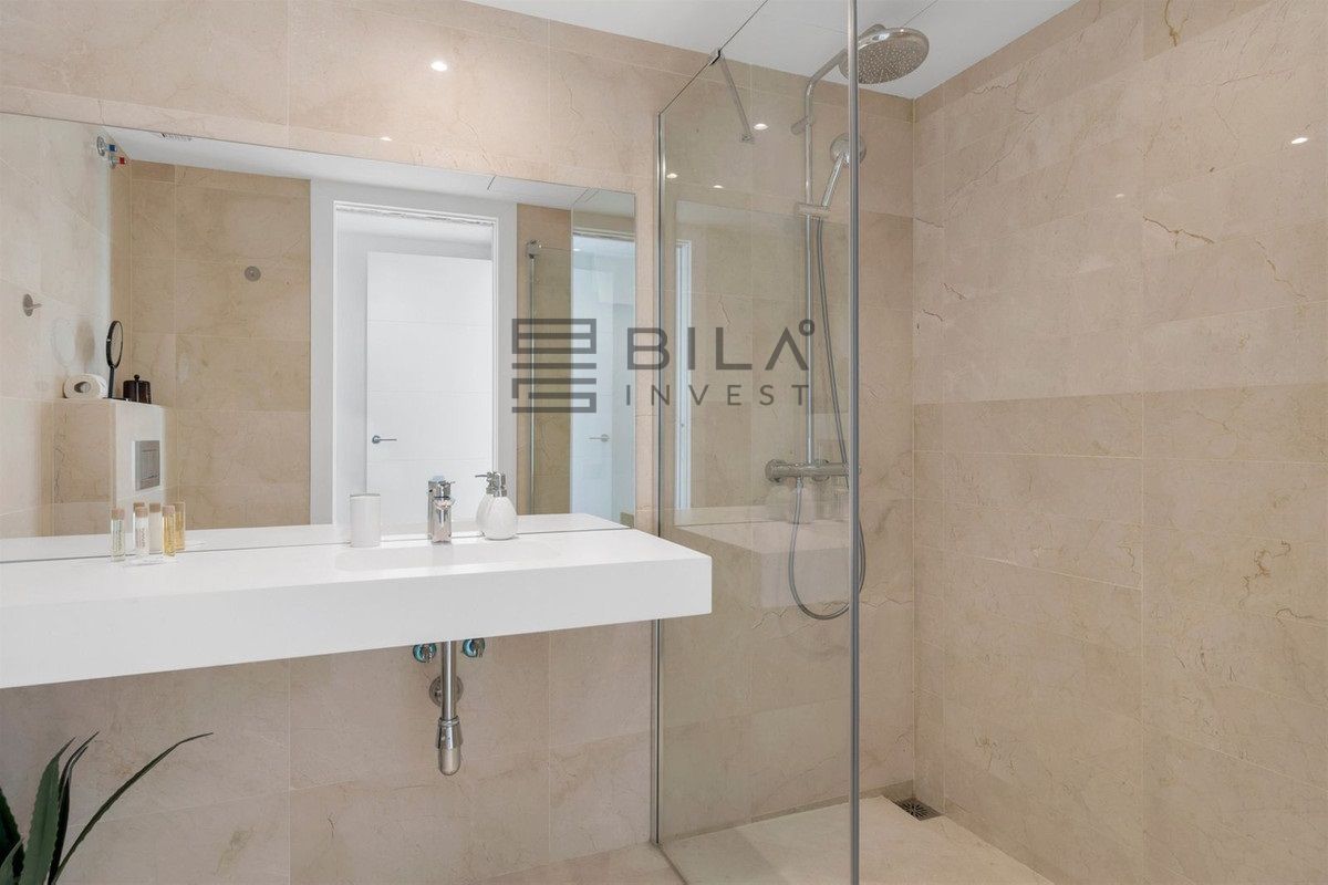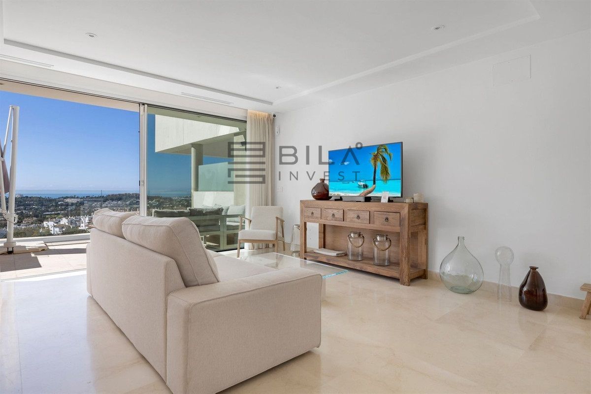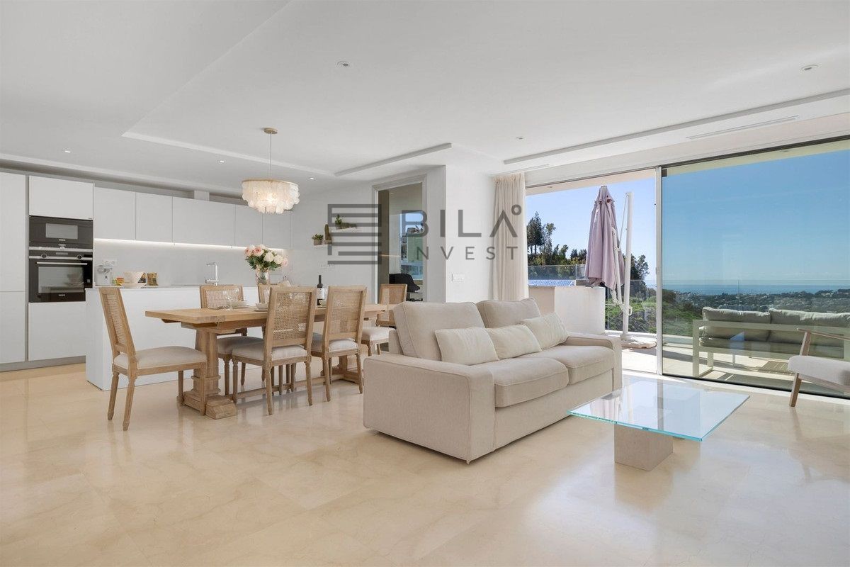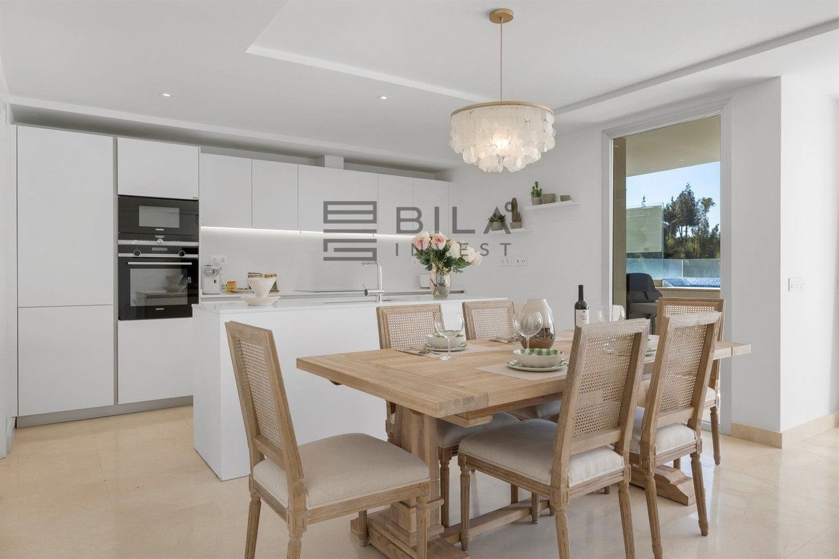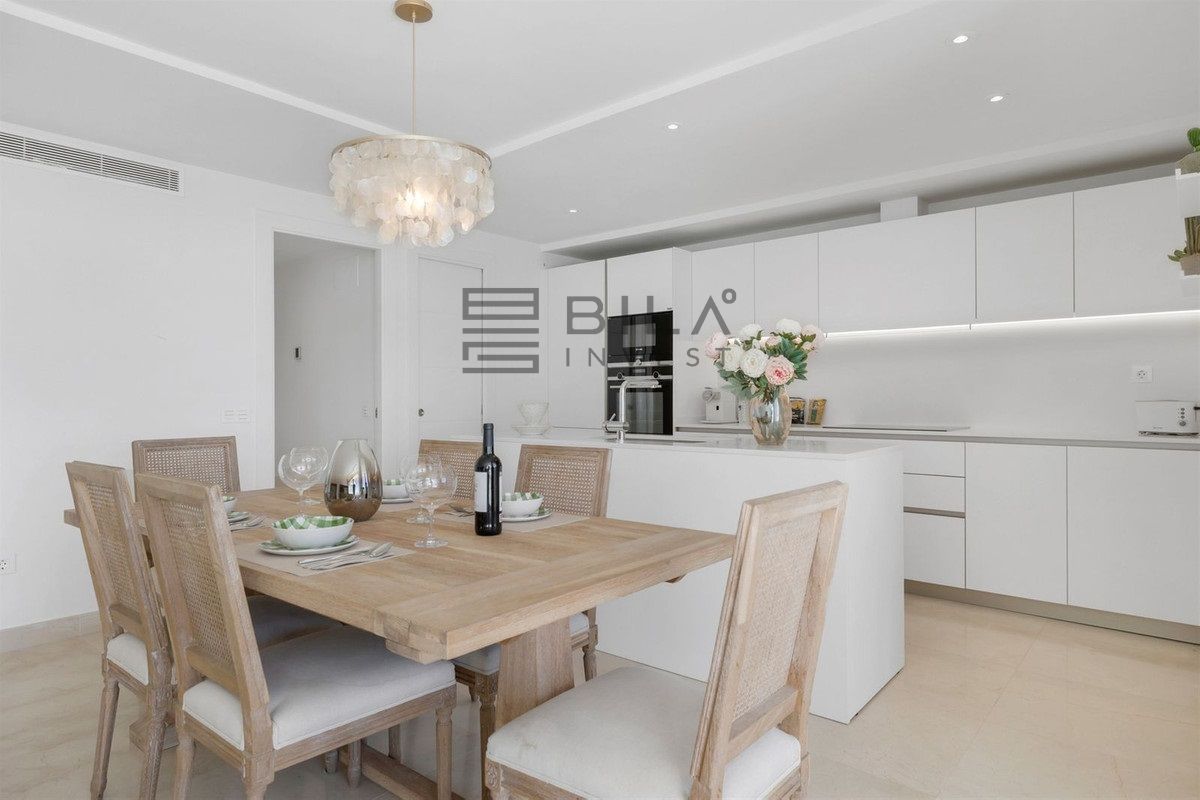 La impresionante zona diáfana de salón, comedor y cocina se integra a la perfección con una espectacular terraza cubierta de 34 m² con una piscina privada de 3 × 3 m, perfecta para recibir invitados o relajarse bajo el sol andaluz. Este complejo cerrado, rodeado de jardines tropicales y piscinas infinitas, ofrece tranquilidad, vistas panorámicas al mar y se encuentra a solo unos minutos del bullicioso Puerto Banús. Una oportunidad única para disfrutar de un refugio tranquilo con el glamour de Marbella a un paso. Construida con materiales de primera calidad y acabados impecables, rebosa elegancia, sofisticación y estilo moderno, lo que sin duda impresionará incluso al comprador más exigente.