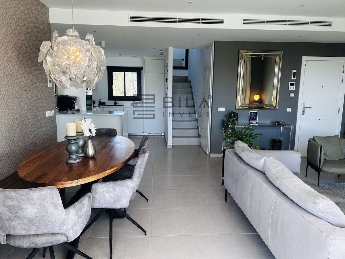 Ubicado en un entorno natural privilegiado, este ático combina un diseño moderno, un interior luminoso y espacioso, y unas vistas impresionantes. Desde el momento en que entra, la luz natural inunda cada rincón, realzando los acabados de alta calidad y creando un ambiente cálido y acogedor.