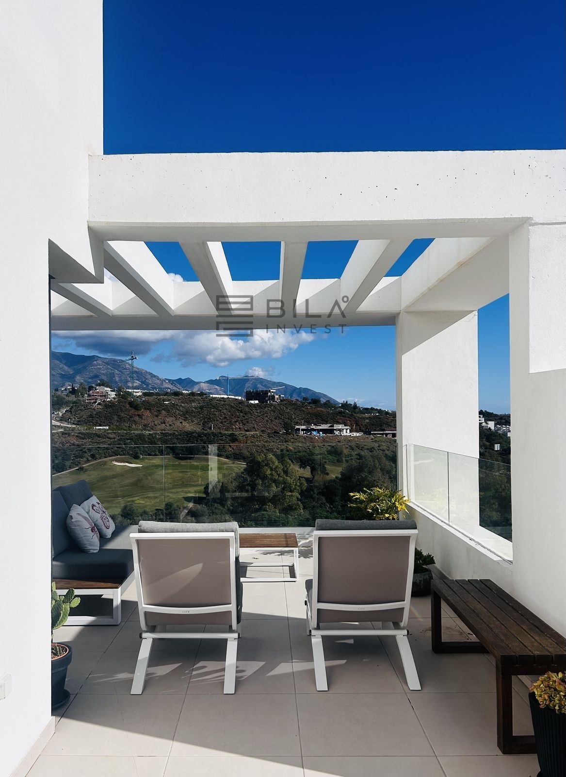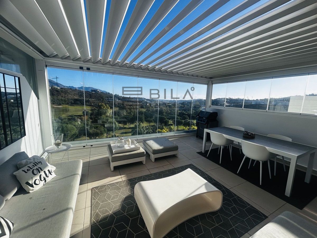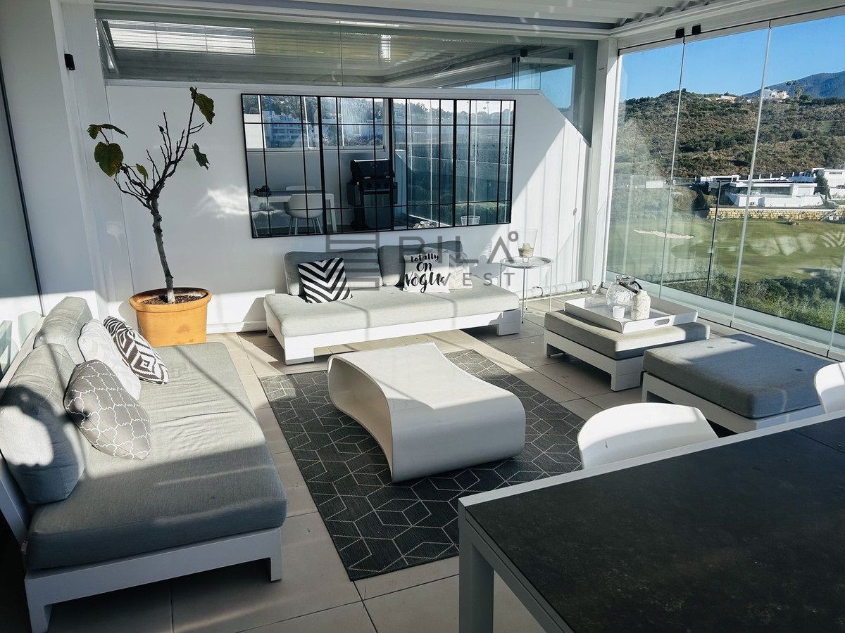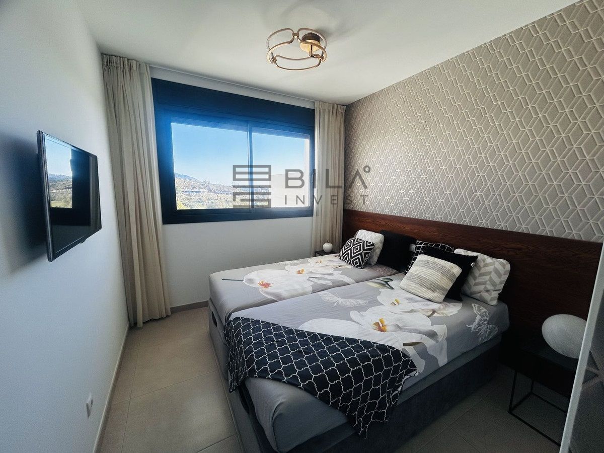 El ático está situado en primera línea del famoso campo de golf "Campo América" de La Cala Golf y ofrece impresionantes vistas panorámicas a las montañas, los campos de golf y el mar Mediterráneo. Se distribuye en 2 plantas. En la planta principal, el elegante salón-comedor se abre a una amplia terraza donde el amanecer se convierte en una obra maestra. La cocina abierta, totalmente equipada con electrodomésticos Bosch, está diseñada para comidas familiares y se complementa con prácticos armarios para utensilios. Dos dormitorios adicionales ofrecen comodidad y privacidad con impresionantes vistas al campo de golf y comparten el baño de invitados.