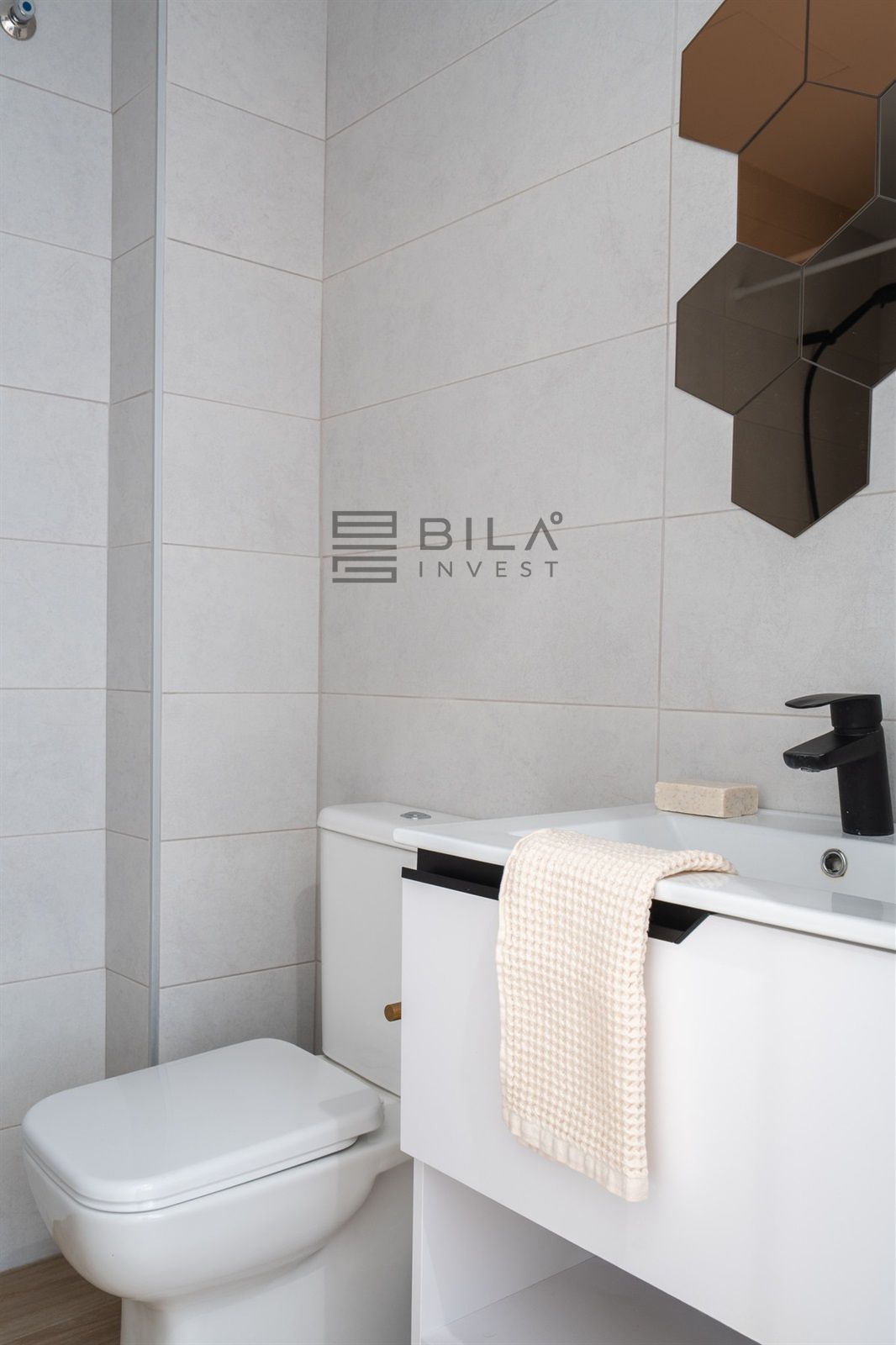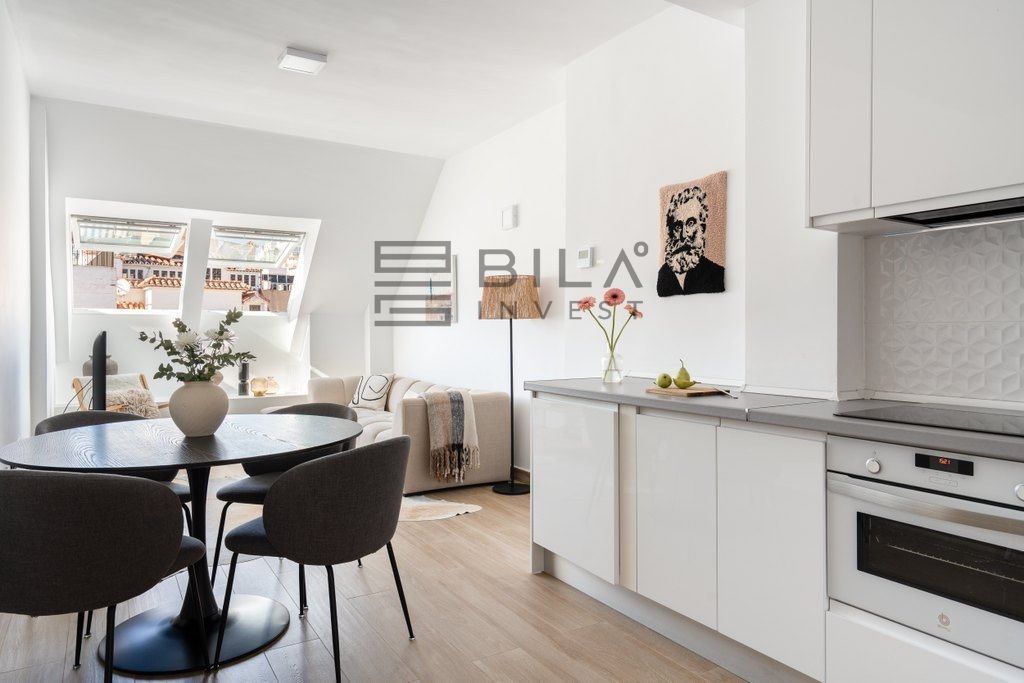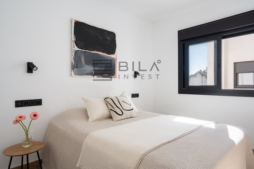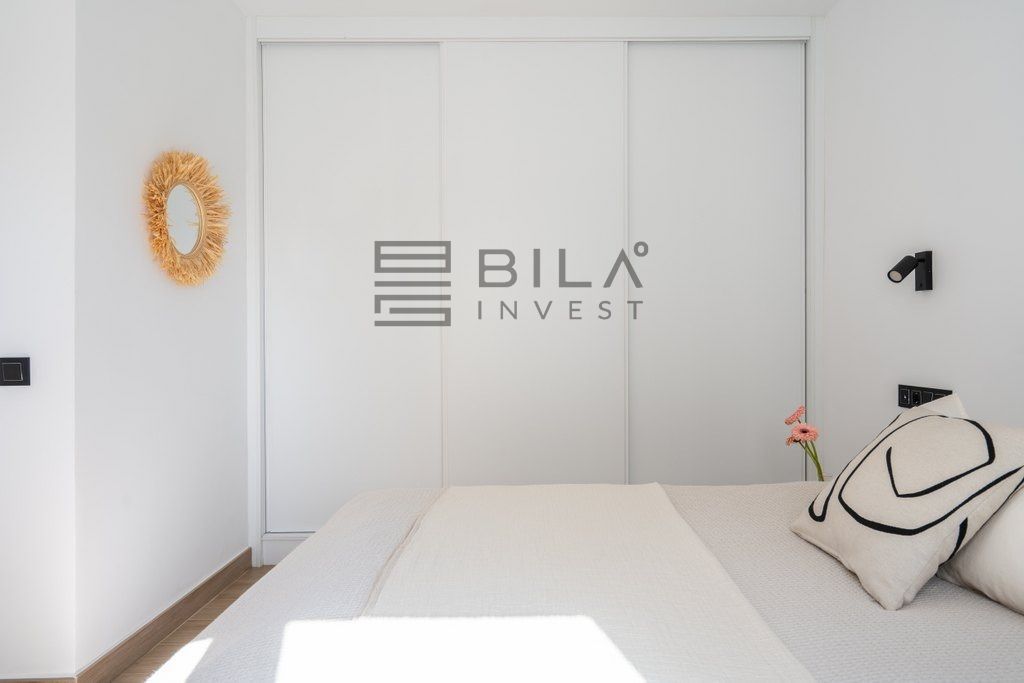 La luz natural se derrama en todo el apartamento, mejorando la sensación fresca y contemporánea. La cocina bien equipada es práctica para la vida cotidiana, mientras que el diseño incluye dos cómodas habitaciones y un baño. Ambos dormitorios cuentan con amplios armarios empotrados.