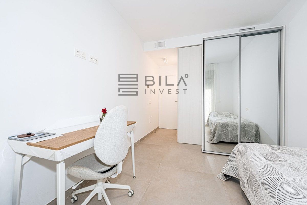 En la primera planta, te recibirán dos luminosos dormitorios y un baño completo, ideal para la comodidad de tu familia o invitados. La cocina, abierta al salón, crea un ambiente acogedor y social, perfecto para disfrutar de momentos inolvidables. Desde aquí, accedes a una amplia terraza donde podrás deleitarte con vistas inmejorables al mar, un lugar perfecto para relajarte con un café por la mañana o disfrutar de una cena/barbacoa al atardecer. Además, toda la vivienda cuenta con suelo radiante, asegurando un confort térmico excepcional durante todo el año.