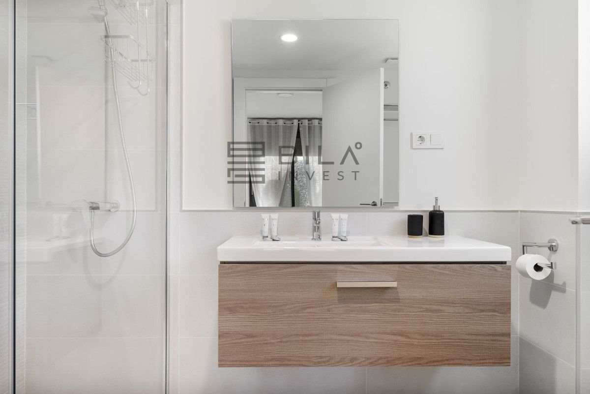 El amplio salón se abre a una gran terraza privada con zona de comedor y un acogedor conjunto de sofás, ideal para relajarse tras un día de excursiones. Desde la terraza se accede directamente a un bonito jardín, perfecto para disfrutar de la tranquilidad y de la vida al aire libre.