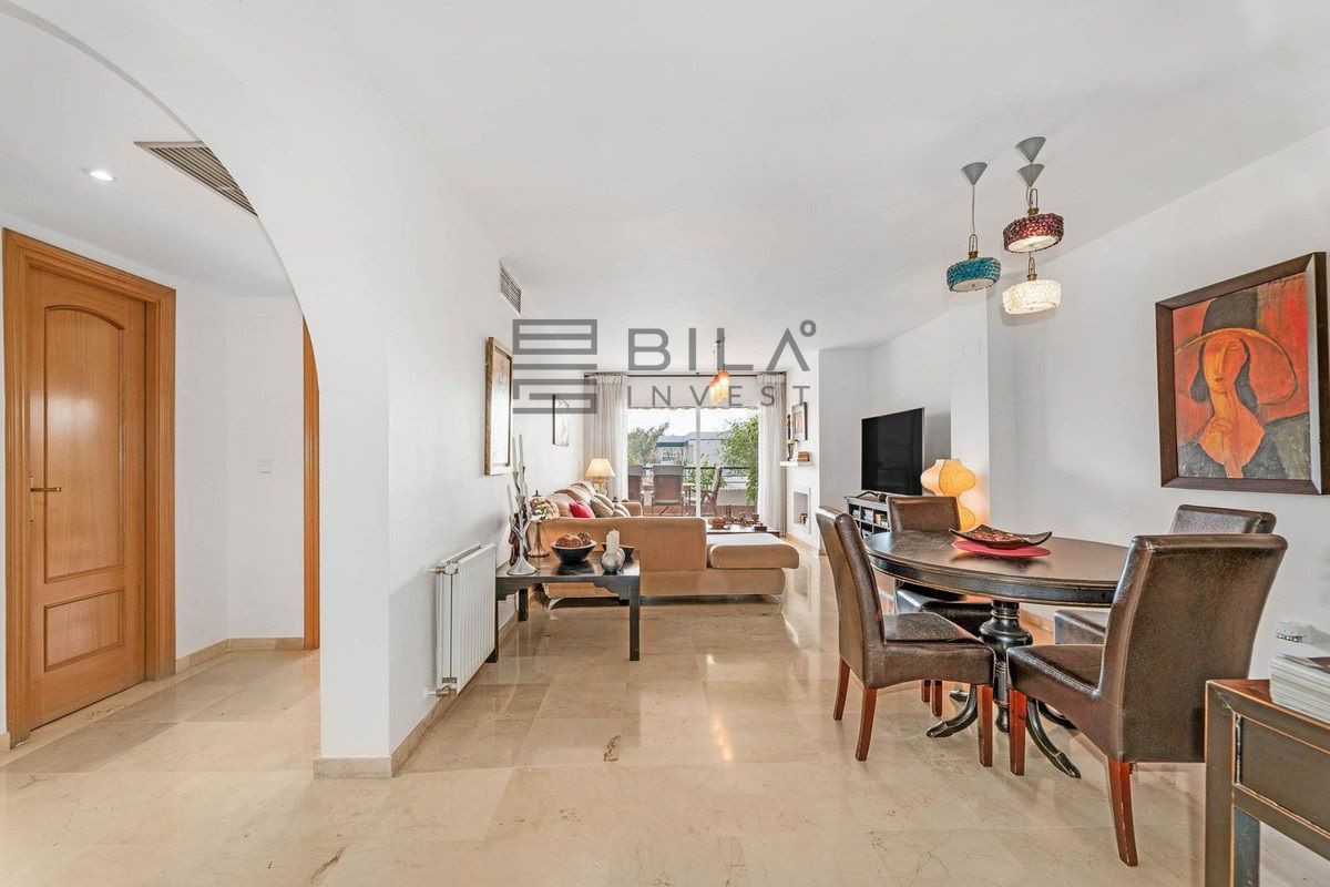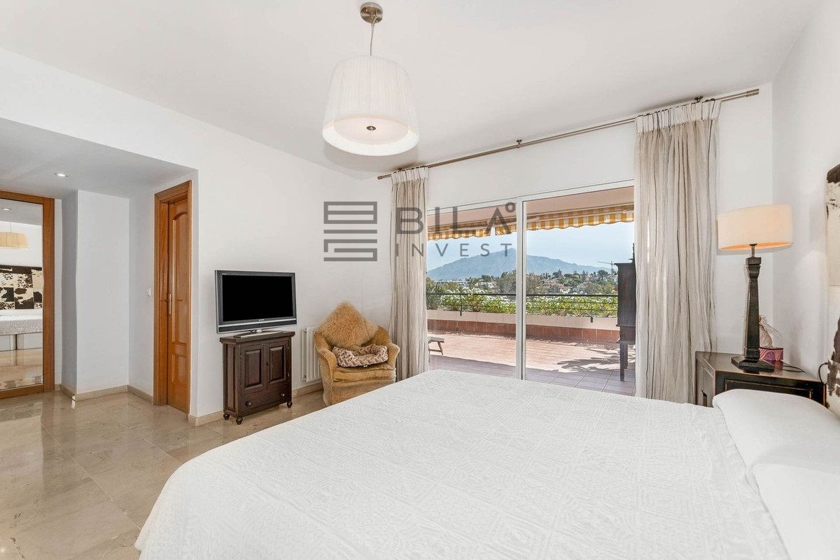Este espacioso dúplex se encuentra a poca distancia del casco antiguo de San Pedro de Alcántara, el centro comercial Guadalmina y la playa, y está a sólo unos pasos del campo de golf Guadalmina y su casa club. Situado en una posición elevada orientada al sureste, se beneficia de espectaculares vistas a La Concha, la montaña emblemática de Marbella, así como de una increíble luminosidad durante todo el día.