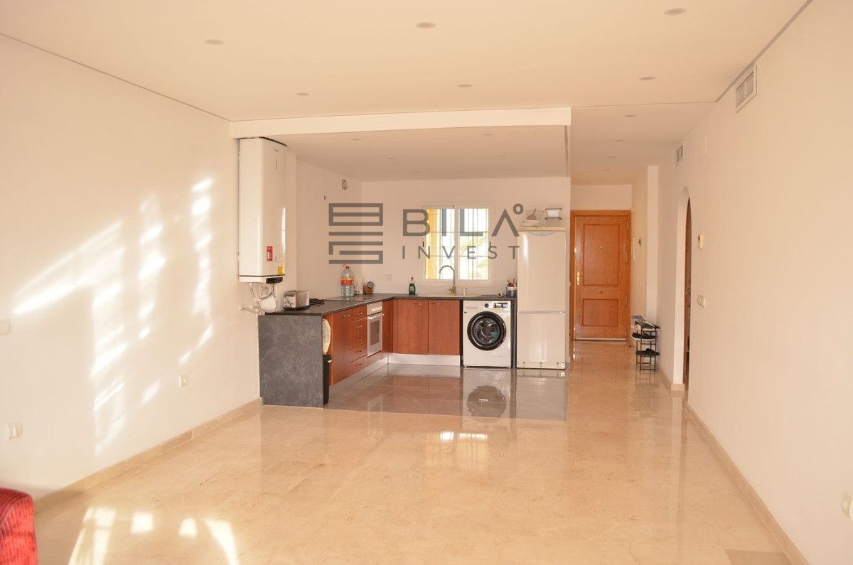 La estancia central se orienta a un uso versátil: sala de estar luminosa y cocina equipada que se adaptan a distintos estilos de vida. Armarios empotrados optimizan el espacio y reducen el desorden, mientras que el aire acondicionado garantiza confort durante todo el año. En cada ambiente se aprecia un diseño práctico, pensado para aprovechar al máximo la superficie de 110 m2.