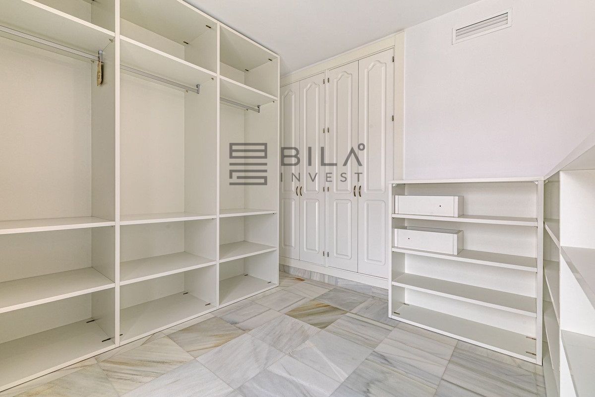 La propiedad contaba originalmente con tres dormitorios, pero actualmente uno de ellos se ha transformado en un amplio vestidor con luz natural. Para quien lo desee, la distribución puede volver fácilmente a su estado original de tres dormitorios. Además, la vivienda dispone de tres baños, lo que la hace muy cómoda tanto para la vida familiar como para recibir invitados.