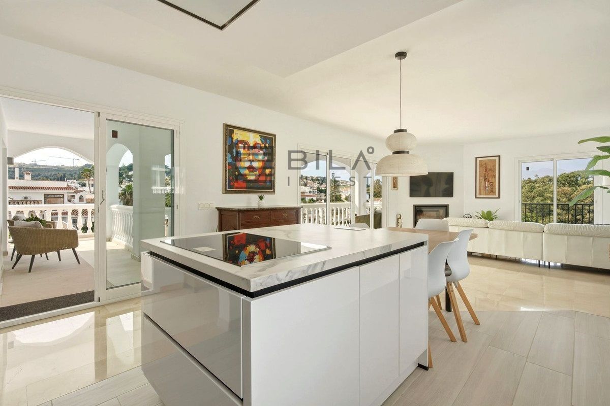 Chalet independiente en venta ubicado en Mijas, Málaga, en la zona de Cerros del Águila, con 263 m2 construidos. Distribución amplia y funcional de 6 habitaciones y 4 baños, pensada para familias que buscan confort y privacidad. El jardín ofrece piscina privada, zonas verdes y un solárium, perfectos para momentos al aire libre sin salir de casa. Dispone de garaje y armarios empotrados en las habitaciones para optimizar el espacio de almacenaje.