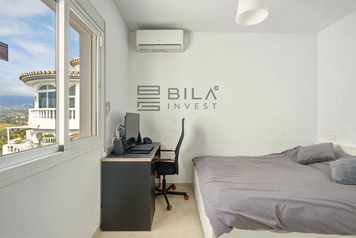 El exterior destaca por un jardín con piscina privada, ideal para tomar el sol y refrescarse en verano, y zonas verdes cercanas que aportan un entorno agradable y tranquilo. El solárium complementa las opciones al aire libre, donde disfrutar de vistas y de un espacio para relajarte o recibir amigos. La propiedad está ubicada en Cerros del Águila, una zona consolidada de Mijas con servicios cercanos, comercios y buenas conexiones de transporte.