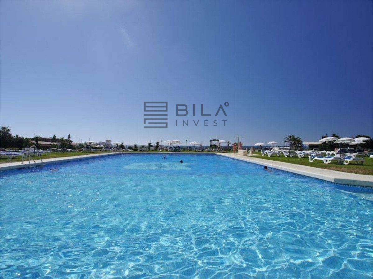 El complejo cuenta con dos piscinas y jardines comunitarios, uno de ellos con acceso directo a la playa. Recomendamos encarecidamente visitarlo.