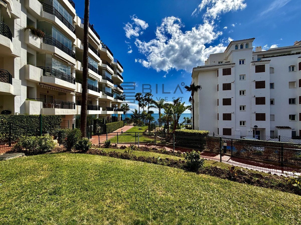Nuevo apartamento en primera línea de playa en Mi Capricho. Piso en planta baja de 2 dormitorios y 2 baños, ubicado en un codiciado complejo junto al sendero litoral, con acceso directo a la playa. Ofrecido por Bila Invest.