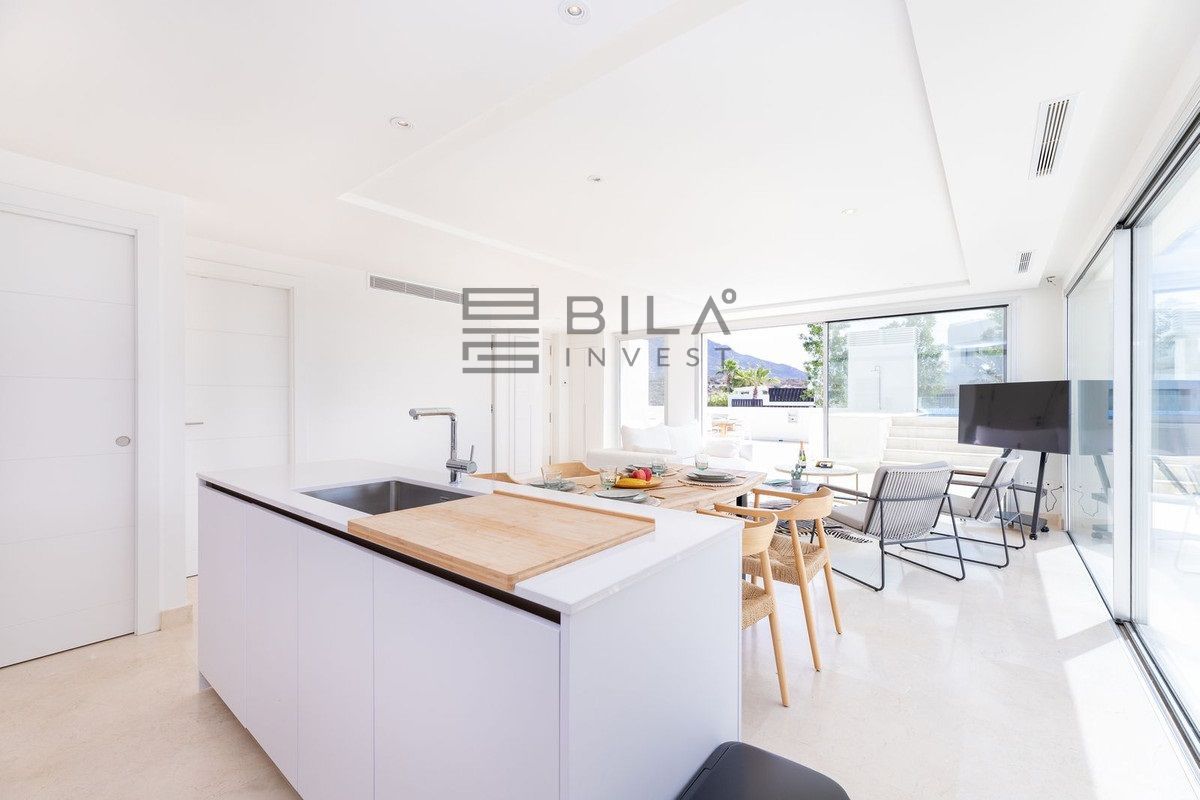 Con un diseño contemporáneo elegante, líneas limpias, acabados de alta gama y una abundancia de luz natural, la propiedad ofrece vistas espectaculares al mar desde su amplia terraza. El gran atractivo es la exclusiva piscina plunge privada, ideal para refrescarse mientras se disfrutan las panorámicas del Mediterráneo y los exuberantes paisajes de golf que lo rodean.