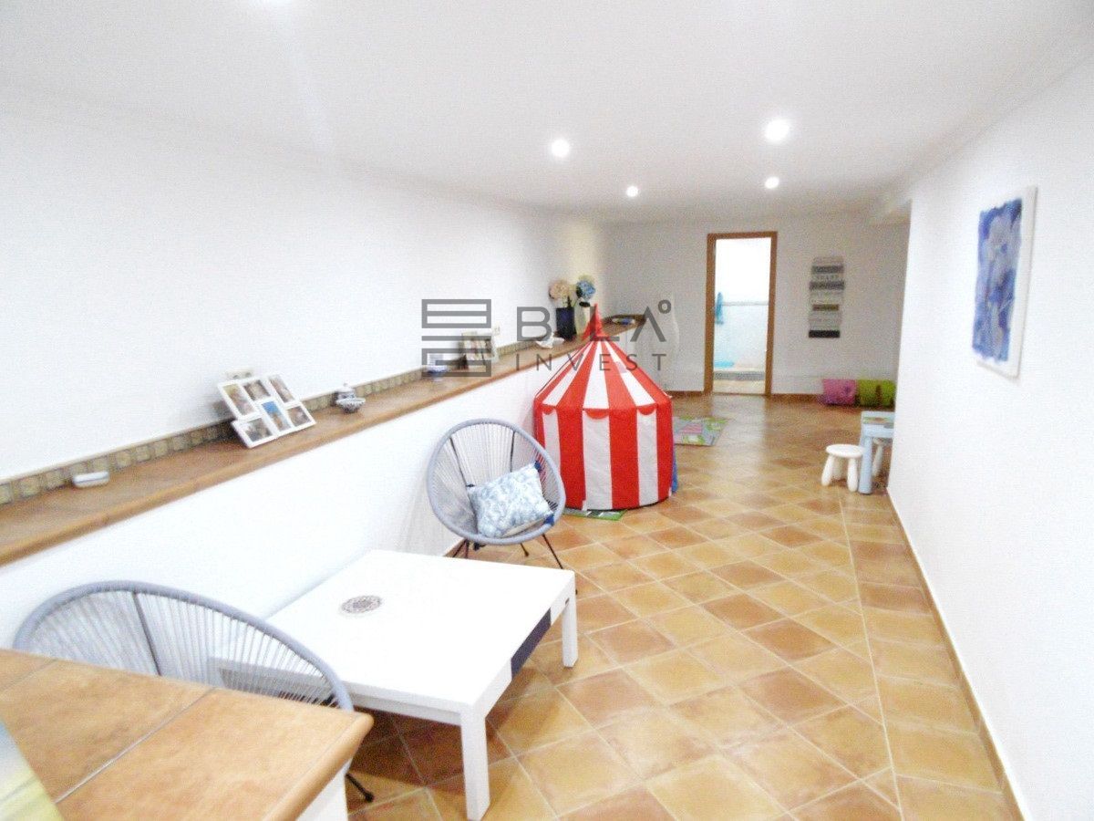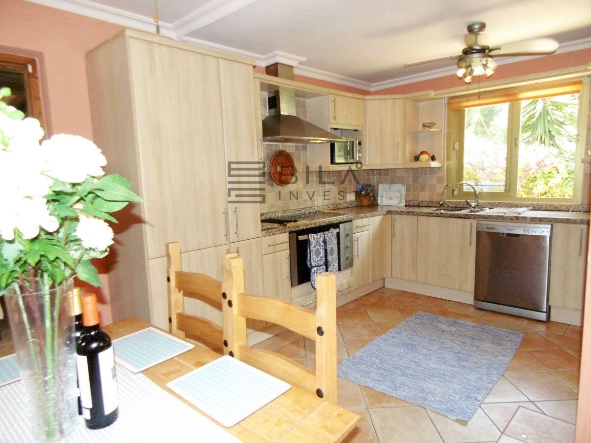 Amplio salón-comedor con chimenea y salida directa a una terraza a nivel del jardín. Dispone también de una cocina independiente de gran tamaño, lavadero, aseo de cortesía y acceso directo a la zona de patio y terraza trasera.