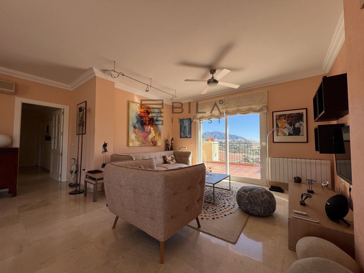 Situado en la última planta, el apartamento disfruta de mucha luz natural, privacidad y vistas abiertas a la montaña y al mar. El salón-comedor conecta directamente con la terraza, creando una continuidad muy natural entre interior y exterior, algo poco habitual dentro de la comunidad.