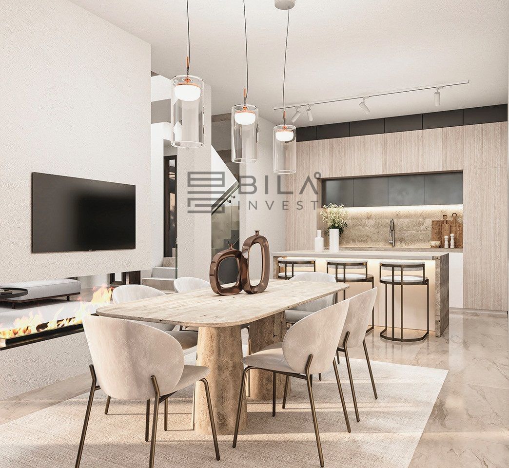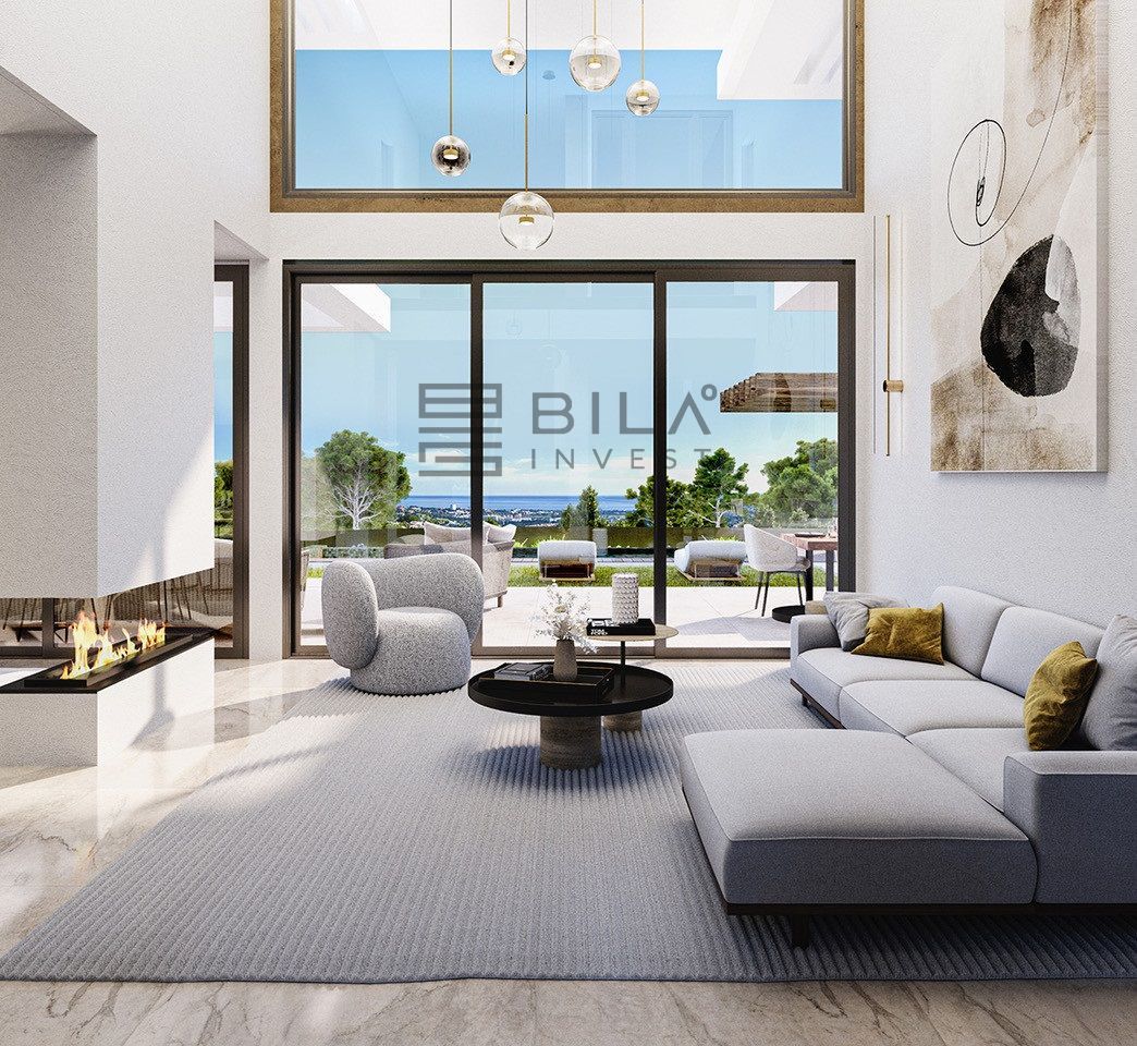 Actualmente en fase de proyecto con licencia aprobada y construcción inmediata tras la venta, la villa combina arquitectura contemporánea con materiales nobles y líneas limpias, en una propuesta estética atemporal que se integra con el entorno. La luz natural fluye por toda la vivienda gracias a los ventanales de suelo a techo y los espacios abiertos de doble altura.