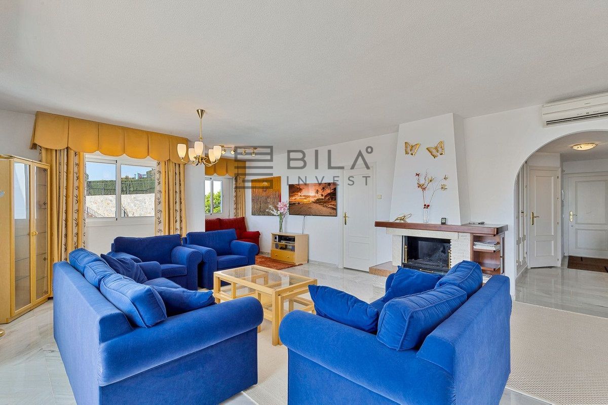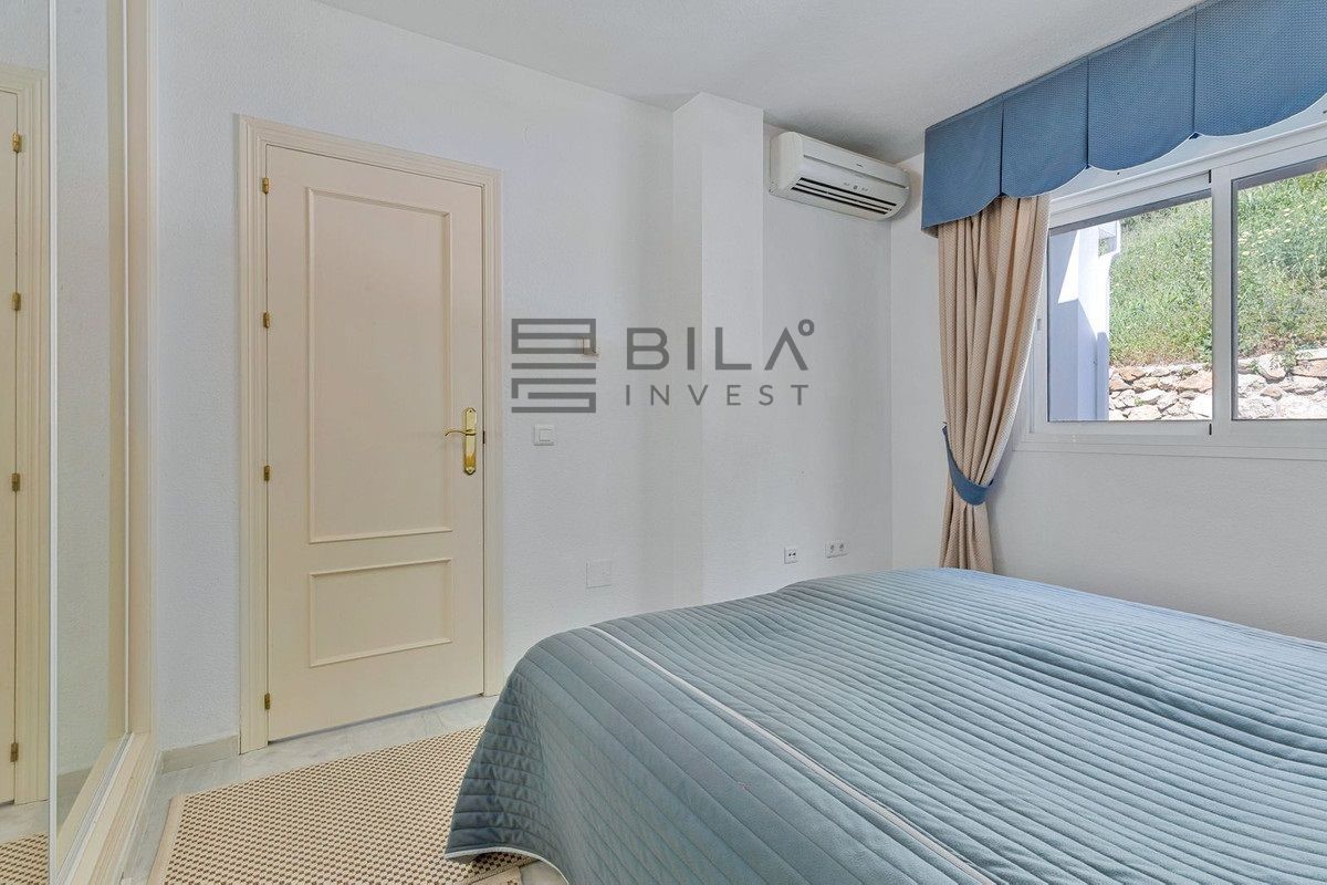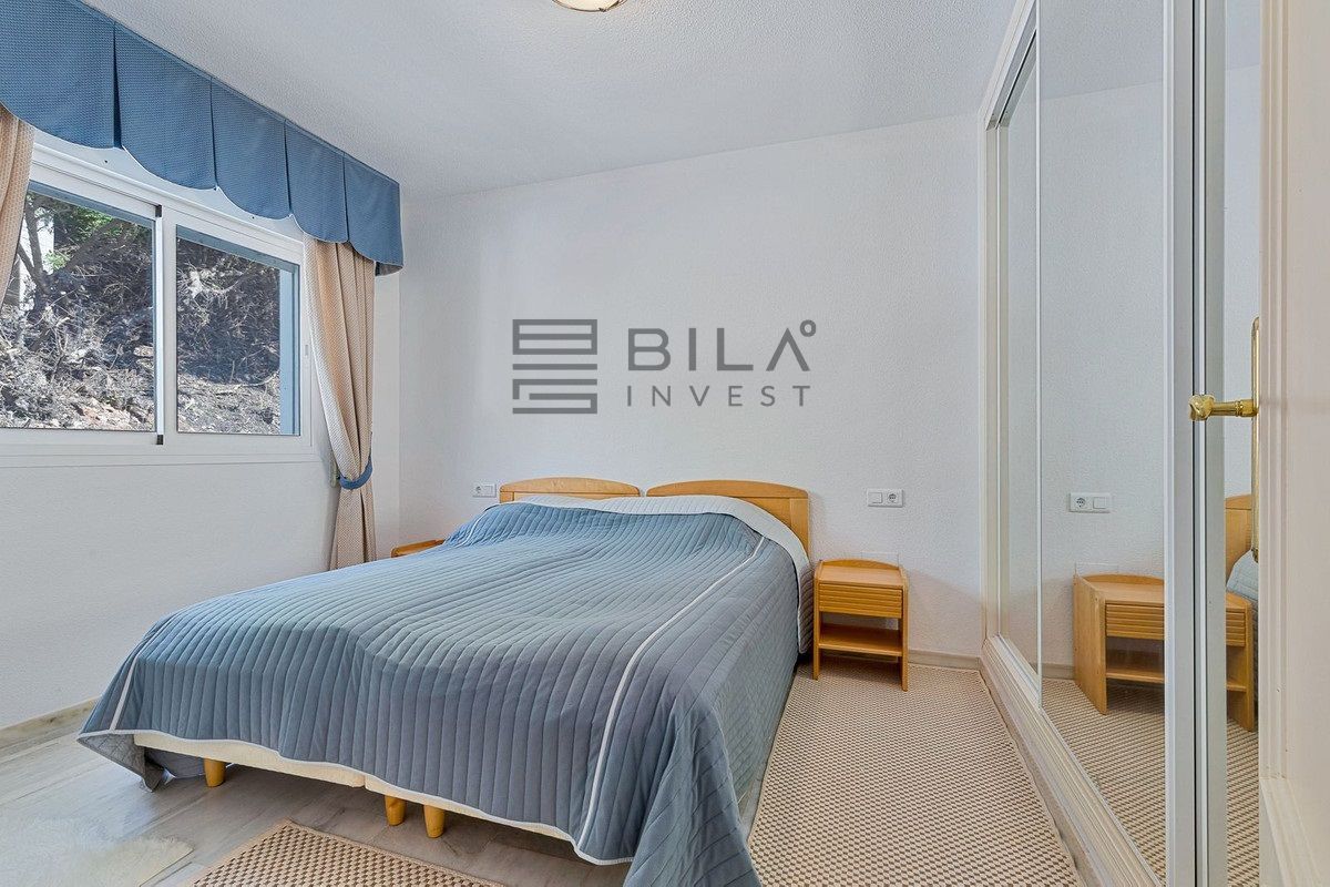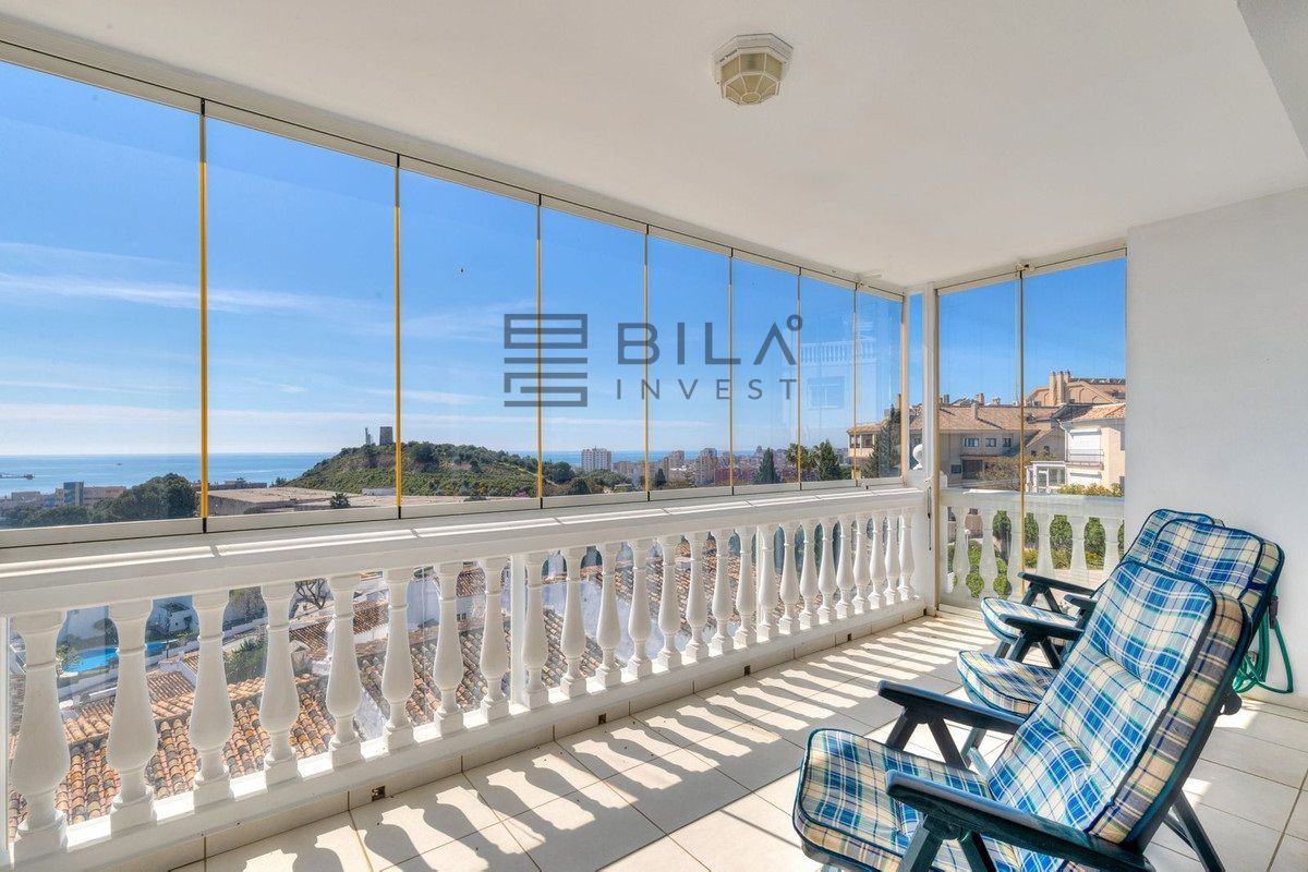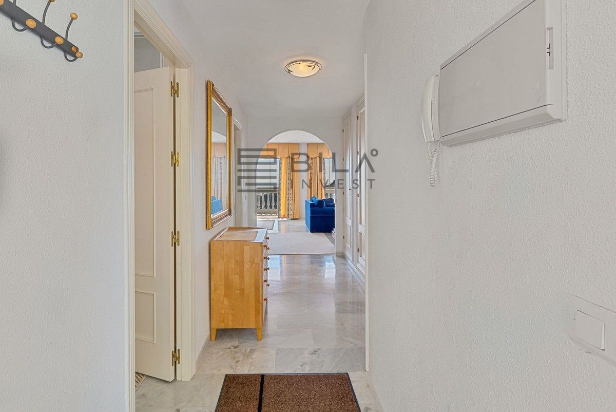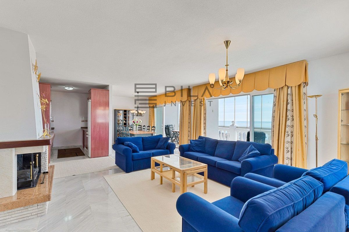 Impresionante ático con increíbles vistas al mar y orientación sur. Amplio piso con 138 m² de superficie, esta vivienda destaca por buena calidad de construcción. Cuenta con dos amplios dormitorios, y un despacho, dos baños completos, una cocina perfectamente equipada y un gran salón comedor con chimenea. Una espectacular terraza de 20 m² aporta luminosidad y es ideal para disfrutar de las mejores vistas al mar. Además, dispone de dos plazas de garaje cerradas y privadas, piscina comunitaria, ofreciendo todas las comodidades para una vida confortable y exclusiva. Propiedad dotada con portero automático, suelo radiante en toda la casa, air-acondicionado, armarios empotrados y sauna. Durante la fase de construcción, esta vivienda se ha fusionado de dos apartamentos de un dormitorio en una entidad más grande, por lo que pueden renovarse en dos apartamentos separados si se desea.