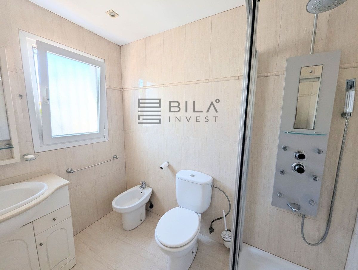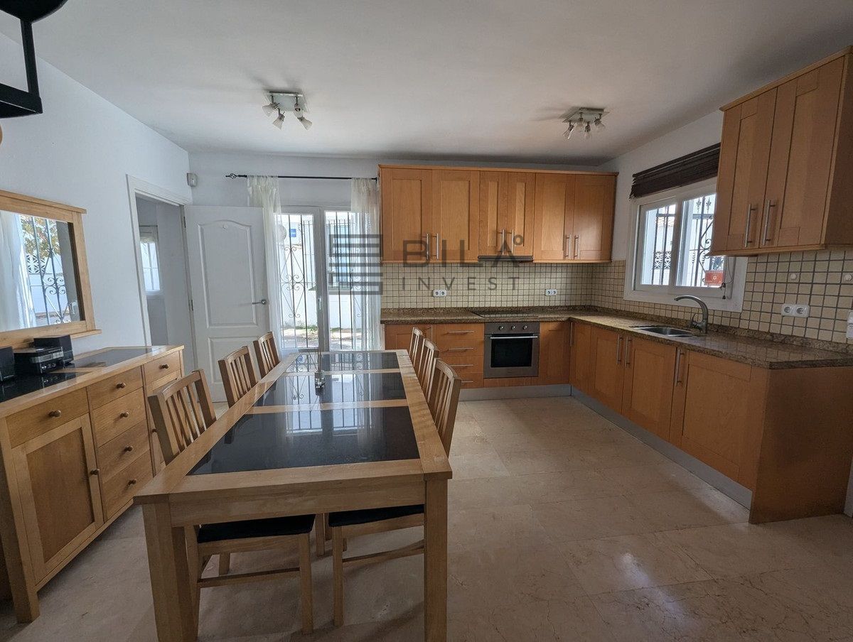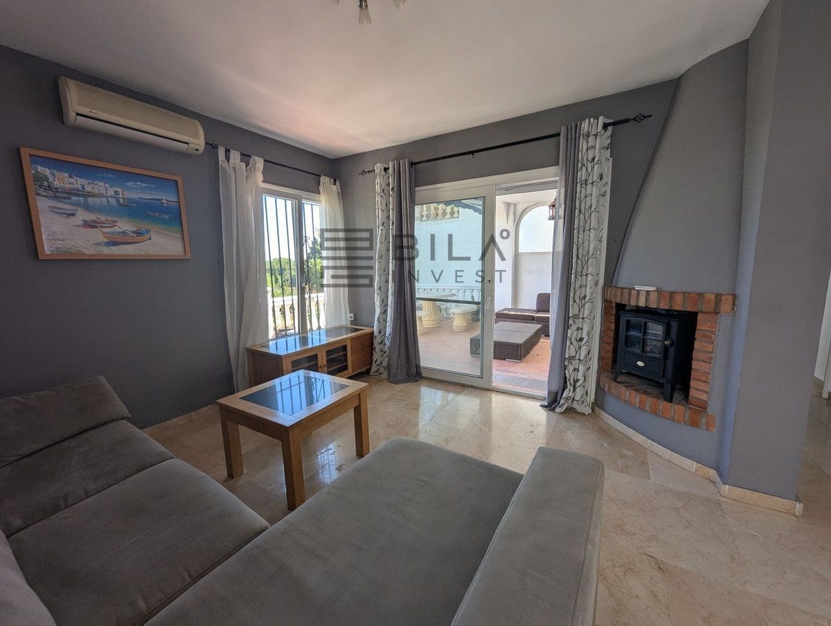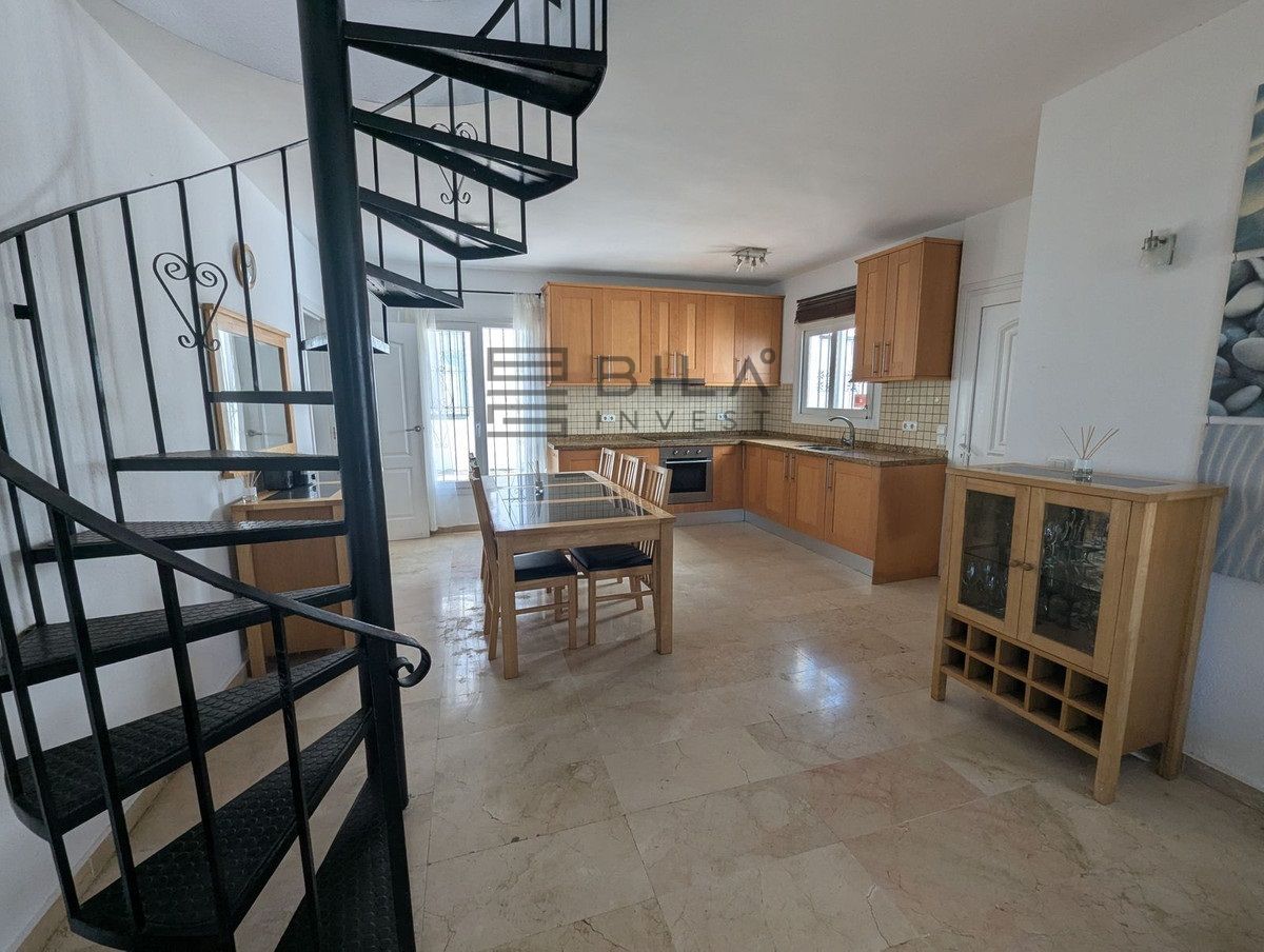 La casa se distribuye en dos plantas y ofrece tres amplios dormitorios y dos baños. Dos de los dormitorios de la planta superior dan a una terraza privada con preciosas vistas a los jardines comunitarios, la piscina e incluso al mar Mediterráneo.