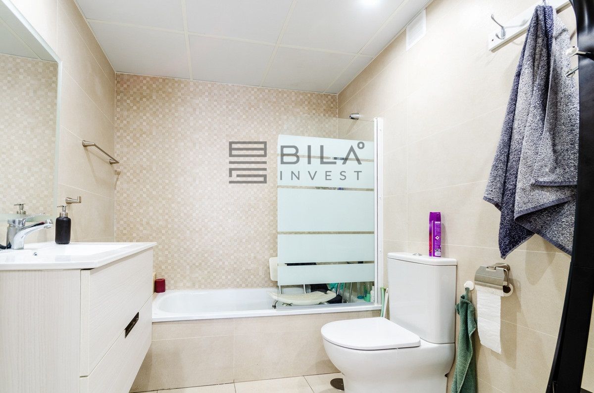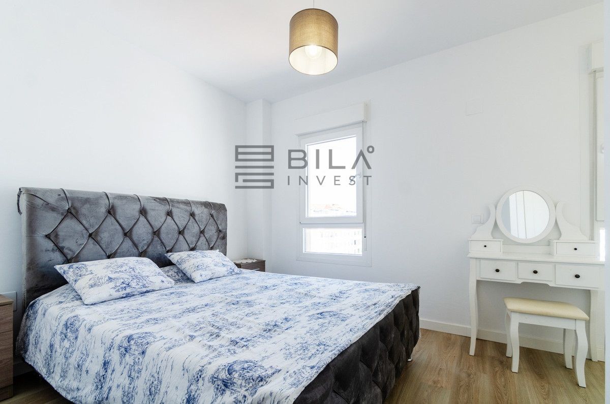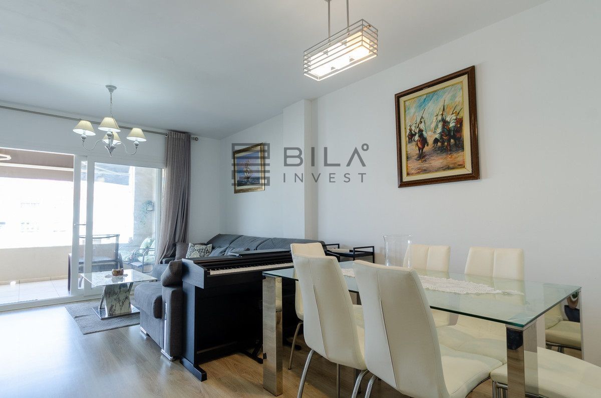 La entrada al piso te recibe con un amplio salón, luminoso y acogedor, que se conecta directamente a una espaciosa terraza. Aquí, encontrarás una cocina completamente equipada con una elegante barra americana y un práctico lavadero.