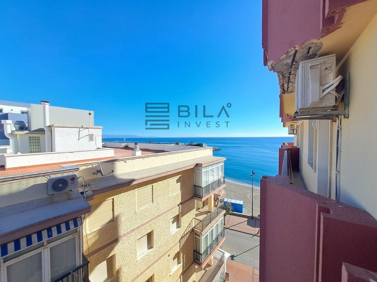 Apartamento en primera línea de playa en una zona privilegiada de la Costa del Sol. El apartamento de distribuye en un salón cocina, 1 dormitorio con baño en suite, y una enorme terraza con vistas laterales al mar, a la montaña y a toda la ciudad. Apartamento en una planta alta en edificio con ascensor. Ideal como inversión o segunda residencia, enorme potencial con una reforma. No dude en contactar para visitar esta propiedad.