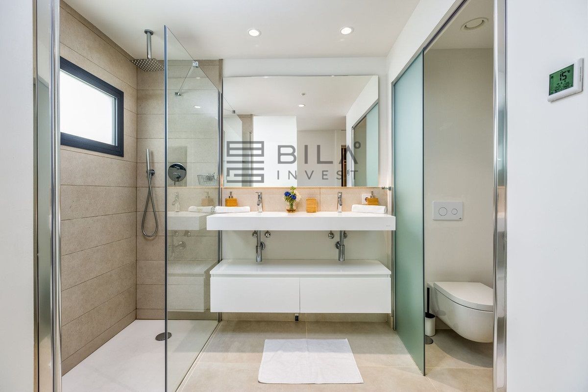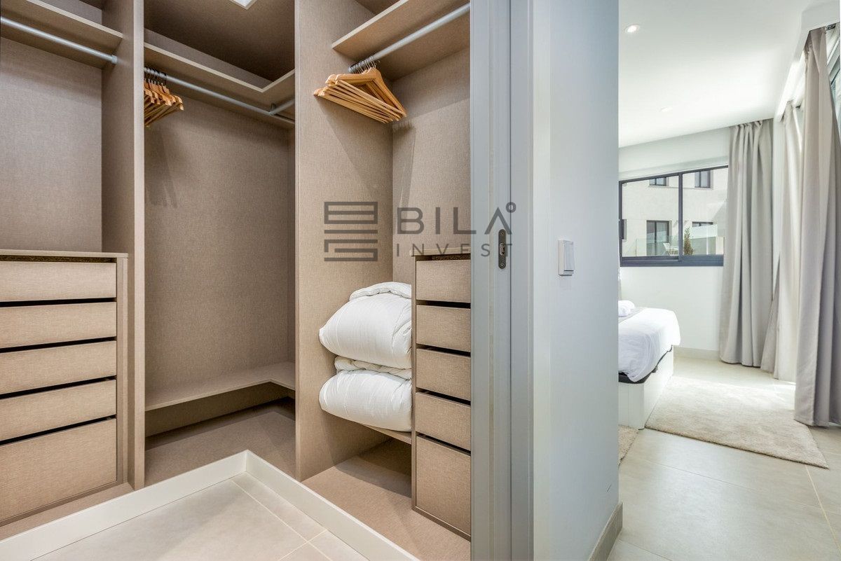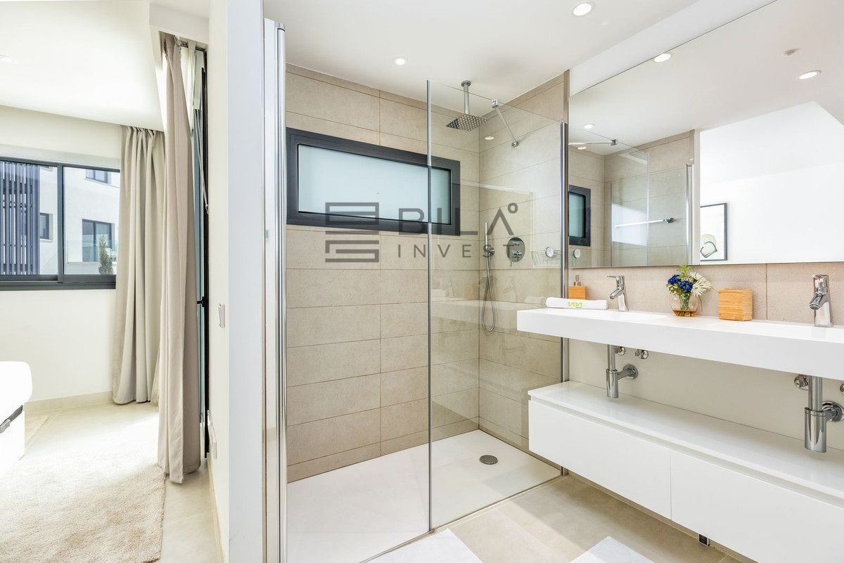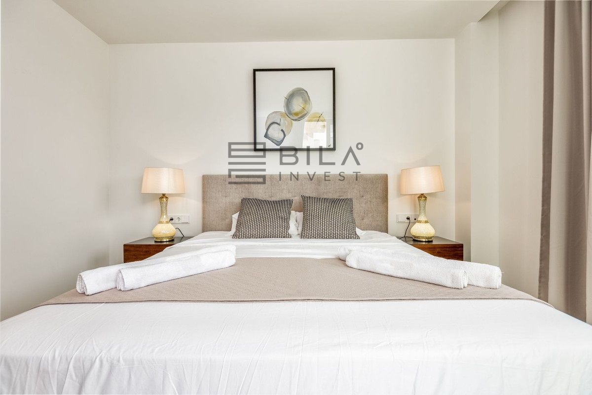 El apartamento cuenta con un acogedor salón, una cocina totalmente equipada ideal para preparar comidas y un jardín privado de 29 metros cuadrados, perfecto para relajarse o recibir invitados al aire libre. También incluye dos terrazas: una de 45 metros cuadrados y otra de 39 metros cuadrados, ofreciendo amplio espacio exterior para cenar, descansar o disfrutar de la brisa mediterránea.