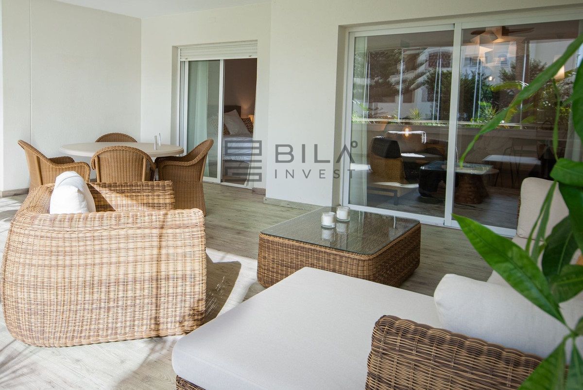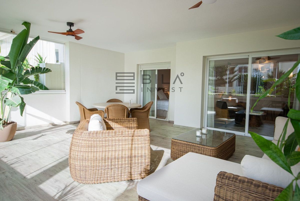 Descubra este impresionante apartamento en planta baja en la codiciada Urbanización Rancho Hotel, situada en Elviria, Marbella. A tan solo 400 metros de la playa, esta propiedad ofrece una combinación perfecta de comodidad y tranquilidad.