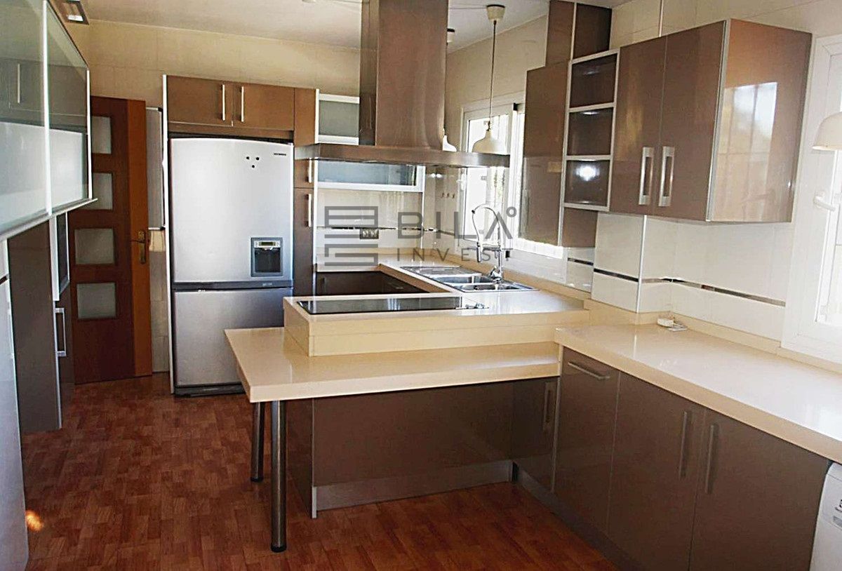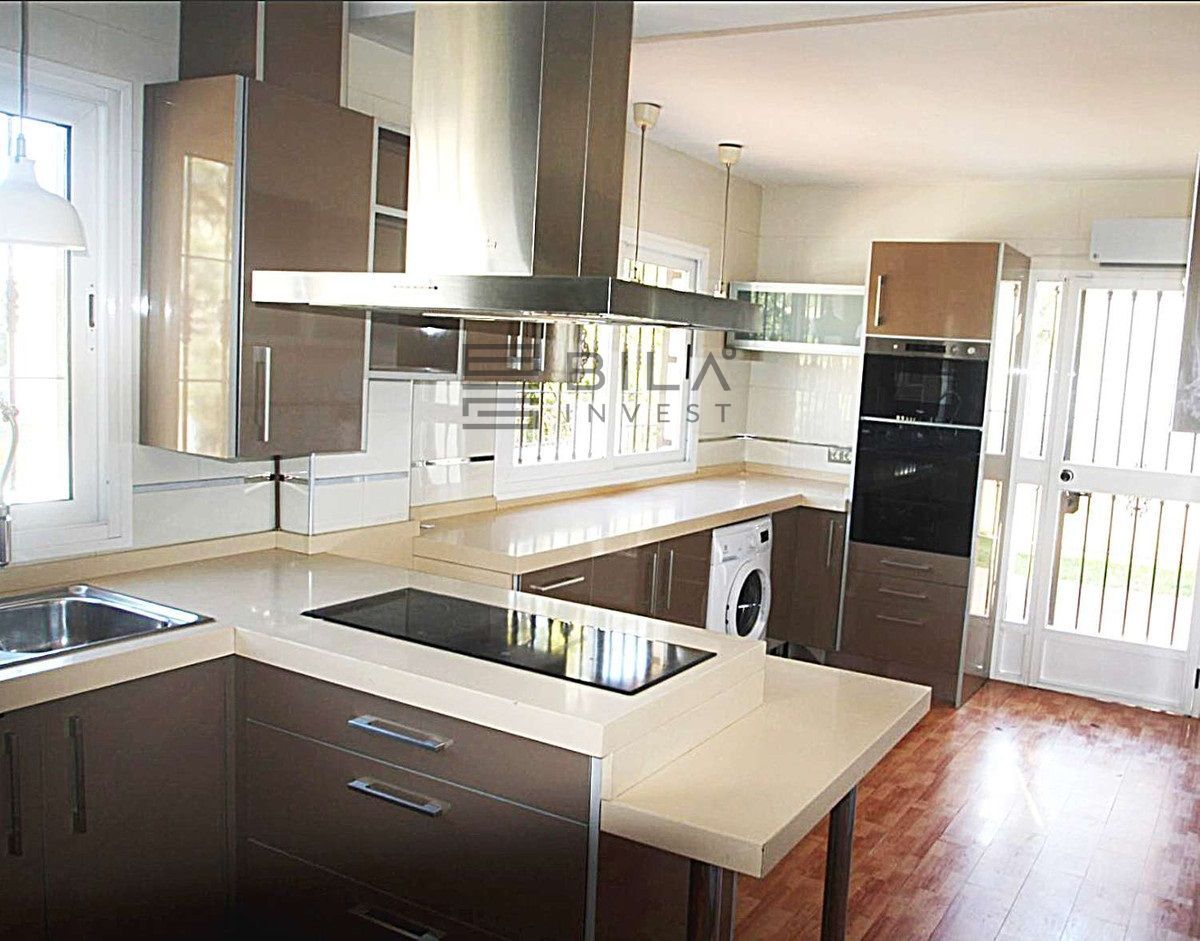La segunda planta alberga el dormitorio principal con baño en suite y vestidor, junto con dos dormitorios adicionales y otro baño con plato de ducha. El sótano es un espacio versátil con sala multiusos, dos habitaciones adicionales, un cuarto de baño y un amplio garaje. Además, el solárium de 45 m² es el lugar ideal para disfrutar del clima mediterráneo.