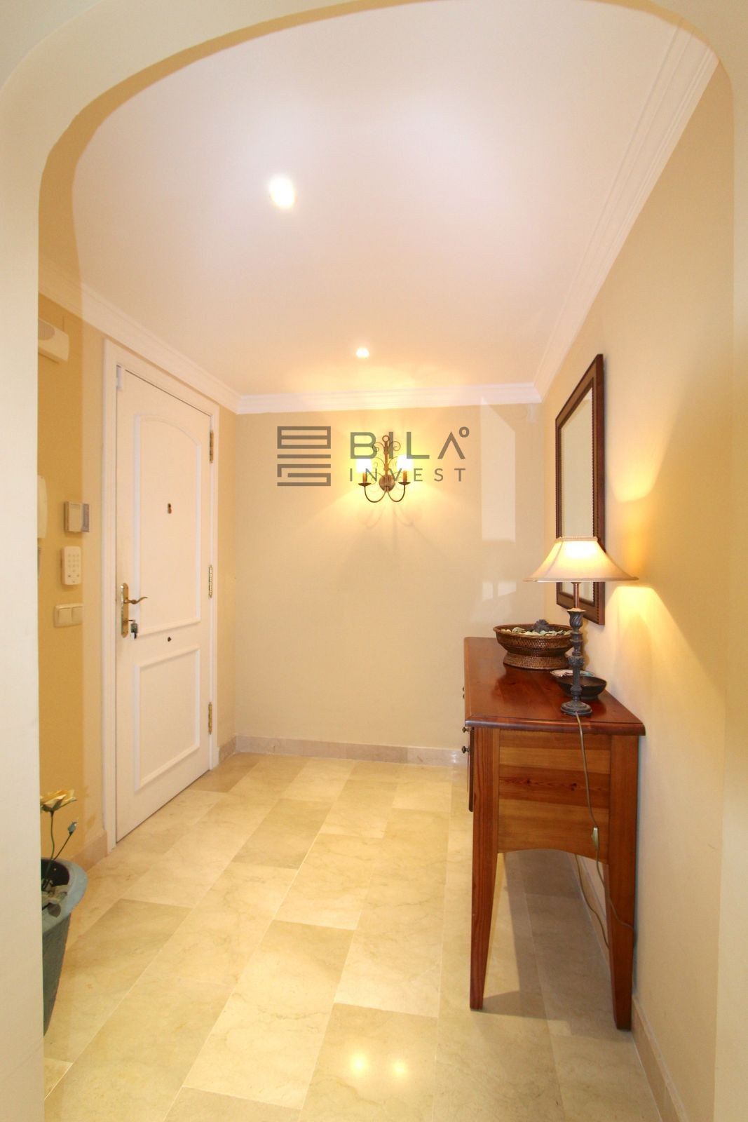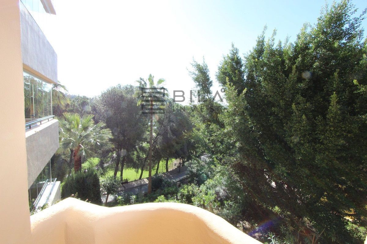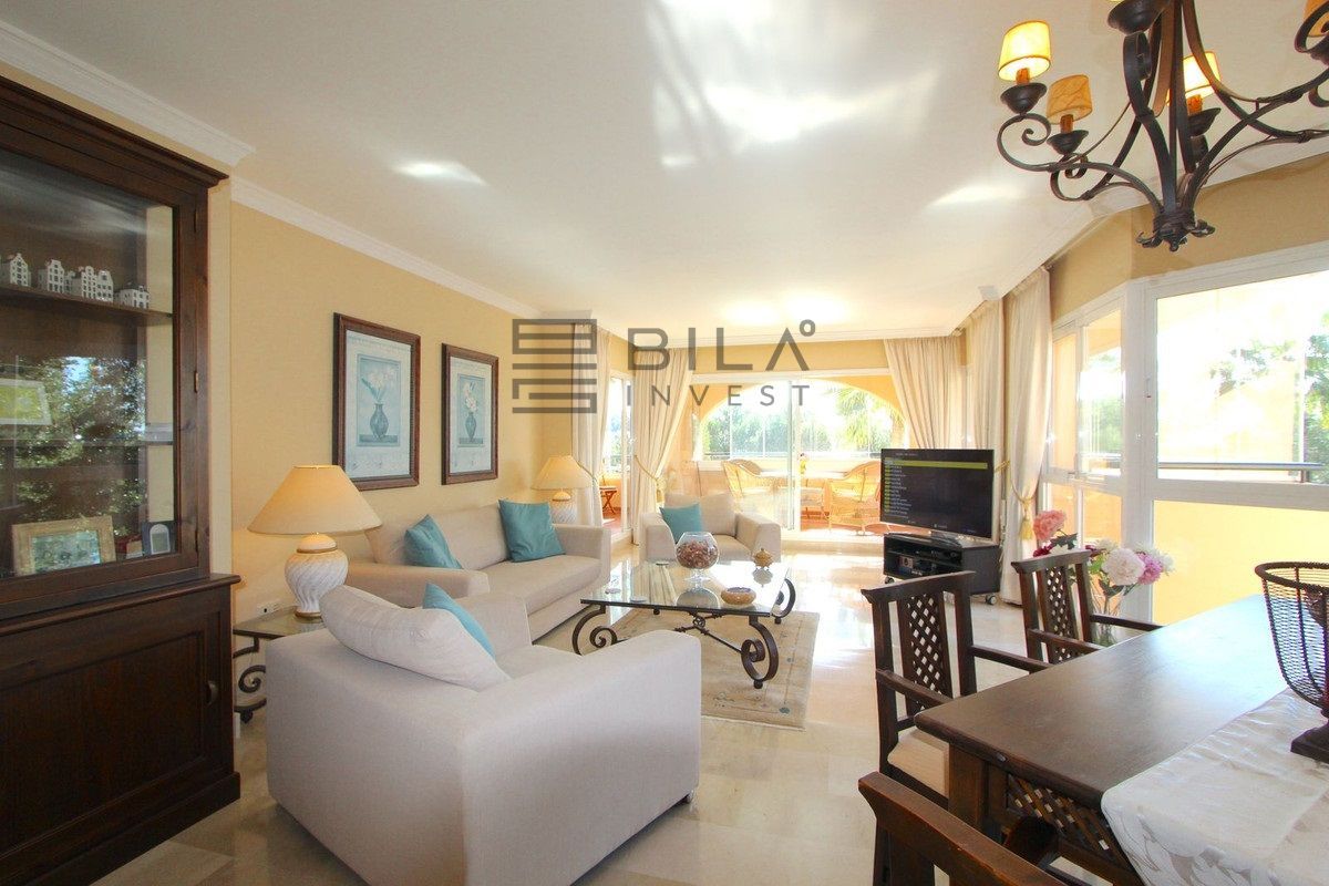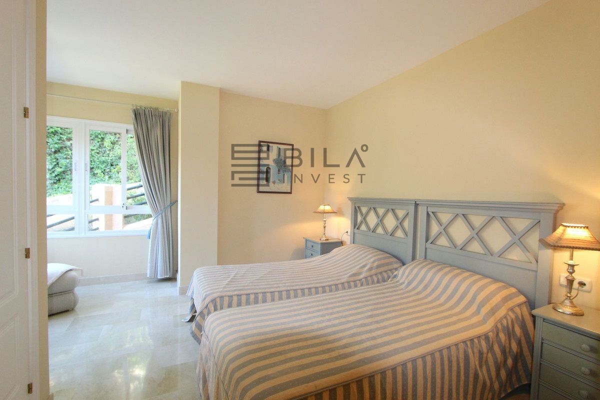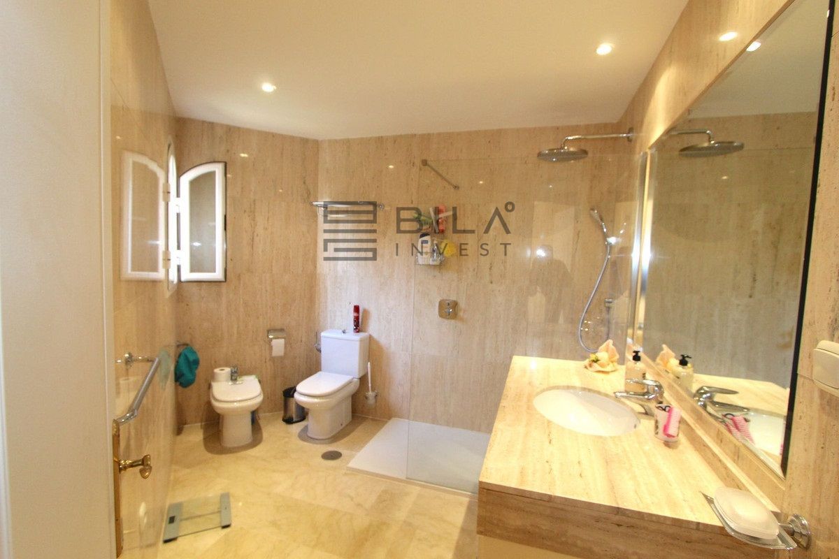 El apartamento cuenta con 3 amplios dormitorios y 2 baños, un amplio salón-comedor con acceso a la terraza orientada al este, con azulejos de cerámica, cortinas de cristal y vistas parciales al mar. Ambos baños, uno de ellos en suite, disponen de duchas a ras de suelo con cabezal de lluvia.