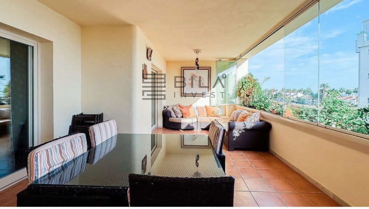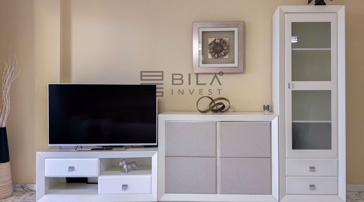 El apartamento cuenta con una superficie de 100 metros cuadrados, además de una amplia terraza acristalada de 20 metros cuadrados. La terraza ofrece impresionantes vistas directas al mar, ideales para disfrutar del café por la mañana o relajarse por la noche. La distribución incluye dos dormitorios, un salón luminoso, una cocina funcional y un balcón técnico. La orientación sur garantiza una excelente luz natural durante todo el día.