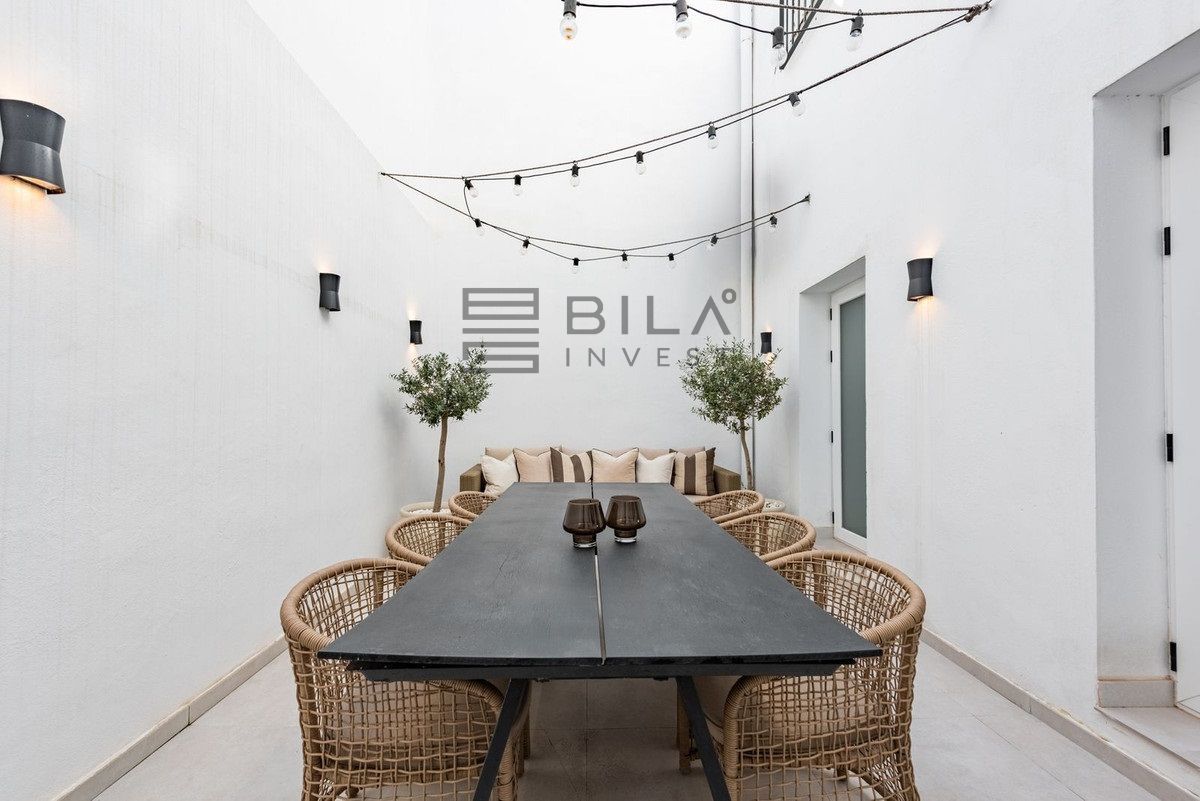 La propiedad dispone de una terraza orientada al oeste y un jardín en la parte delantera, perfectos para disfrutar del sol de la tarde y las cálidas noches. Como valor añadido, hay un luminoso y encantador patio interior conectado directamente a la cocina, que ofrece un espacio maravilloso para cenar y entretenerse bajo el cielo andaluz.