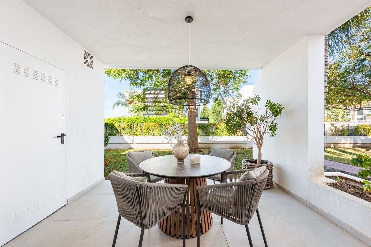 Bienvenido a este elegante y totalmente renovado apartamento en planta baja, ubicado en la codiciada comunidad de Andalucía Garden Suites, una de las más establecidas y populares en Nueva Andalucía. El apartamento cuenta con dos dormitorios decorados con buen gusto y dos baños modernos, todo dentro de una distribución de planta abierta y amueblado con piezas de diseño cuidadosamente seleccionadas que crean una atmósfera armoniosa y elegante.