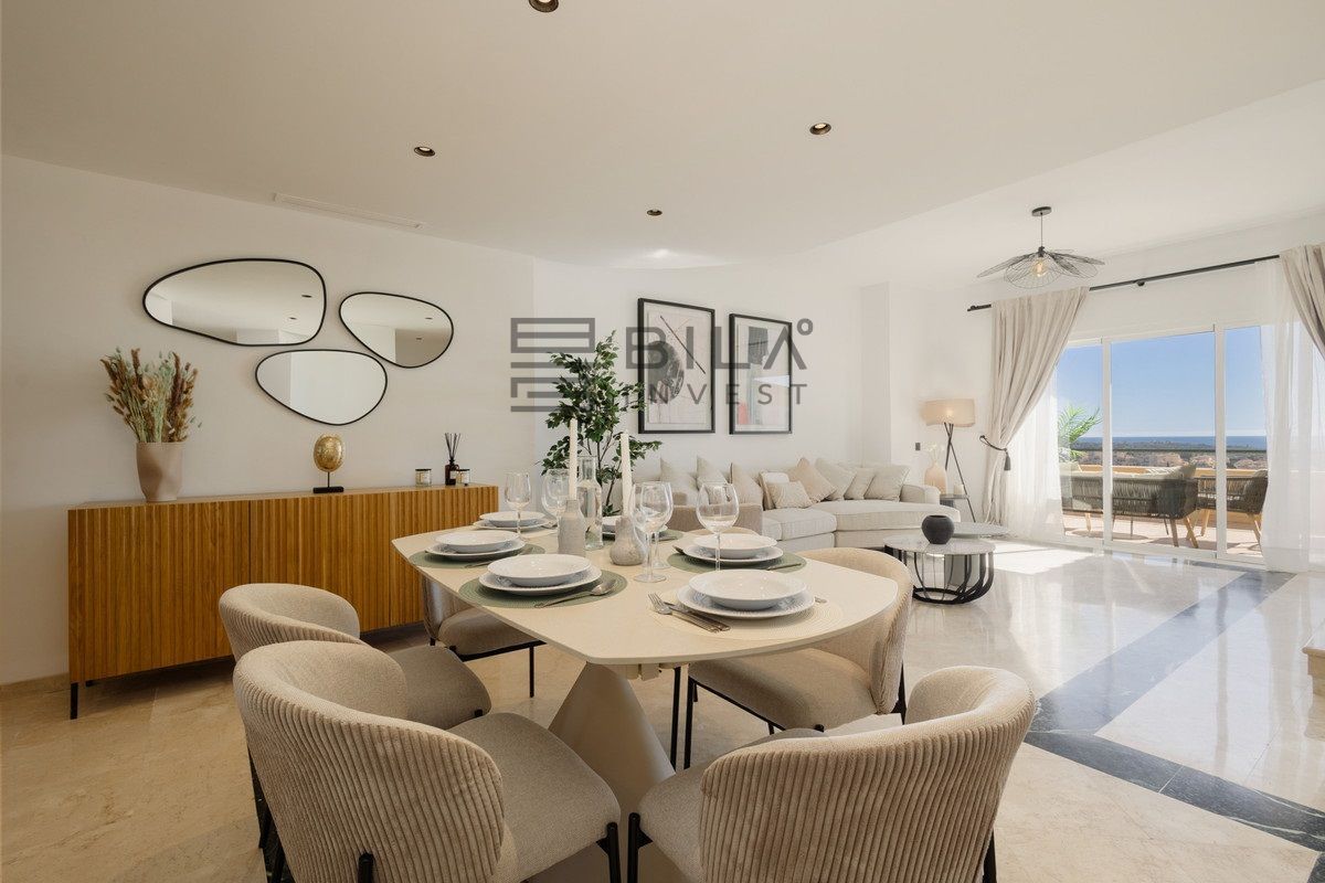 Te presentamos este nuevo apartamento, recién reformado, ubicado en el complejo residencial Elviria Hills, el cual se distingue por su entorno seguro, vistas espectaculares y un ambiente tranquilo, con piscinas y jardín, ideal para familias y aficionados al golf. Dicho apartamento cuenta con 160 m², distribuidos en tres dormitorios y dos baños, uno de ellos en-suite, además de un amplio salón/comedor, con cocina abierta, Y una gran terraza privada, con vistas panorámicas al mar y a la montaña.